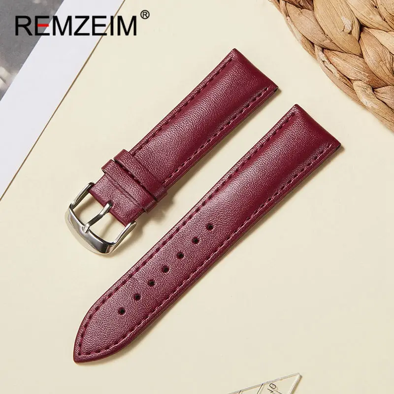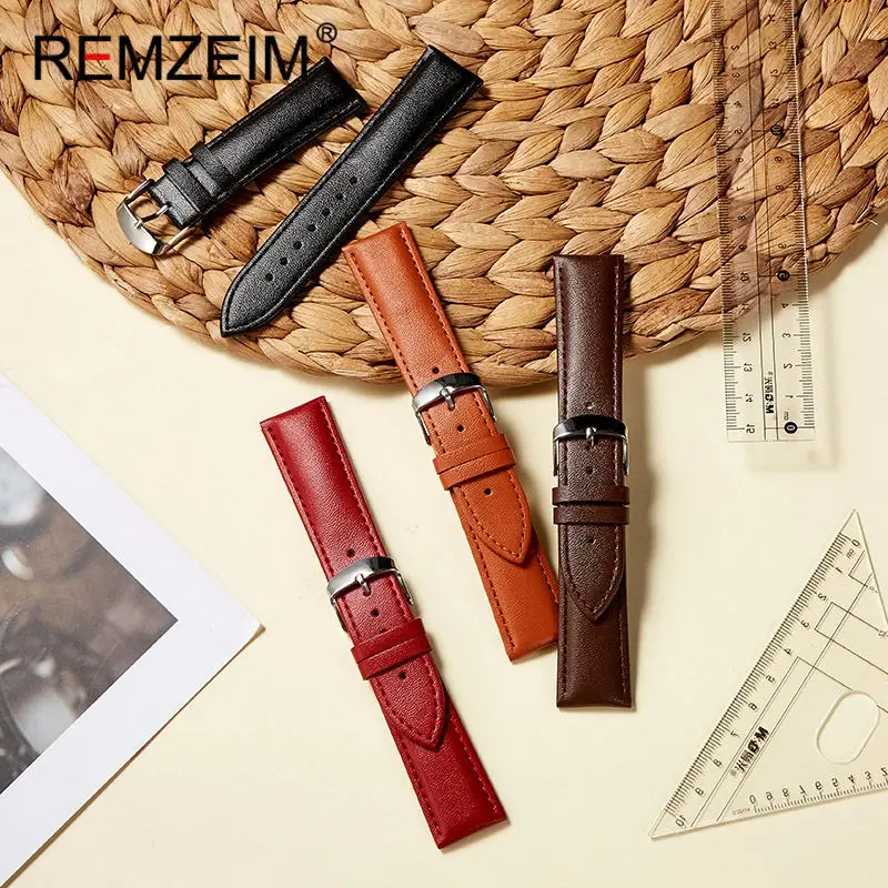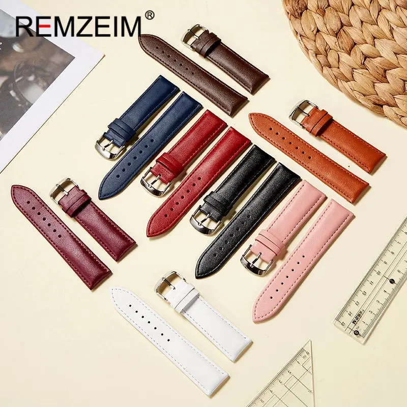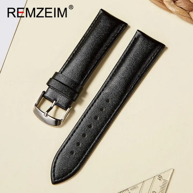 Ремешок REMZEIM из натуральной кожи для наручных часов, универсальный браслет из мягкого материала, аксессуары для часов, 1416182022 мм
