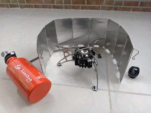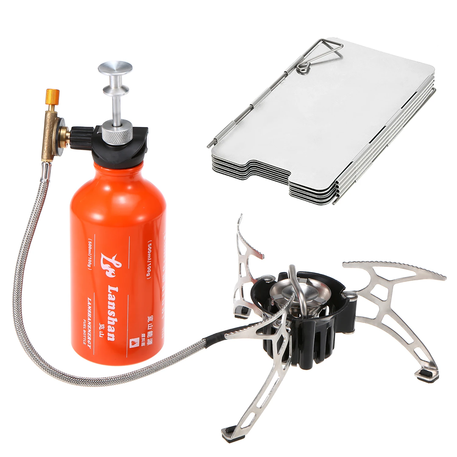 МУЛЬТИПЛИКАТОРНАЯ горелка для кемпинга на открытом воздухе, с бензиновой бутылкой 500 мл и 9-тарельчатой горелкой для кемпинга, ветровым стеклом, дизельным спиртом