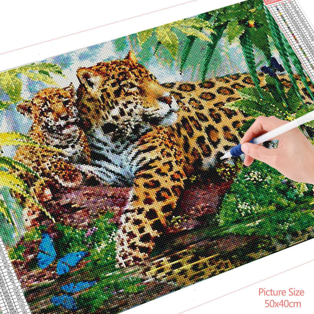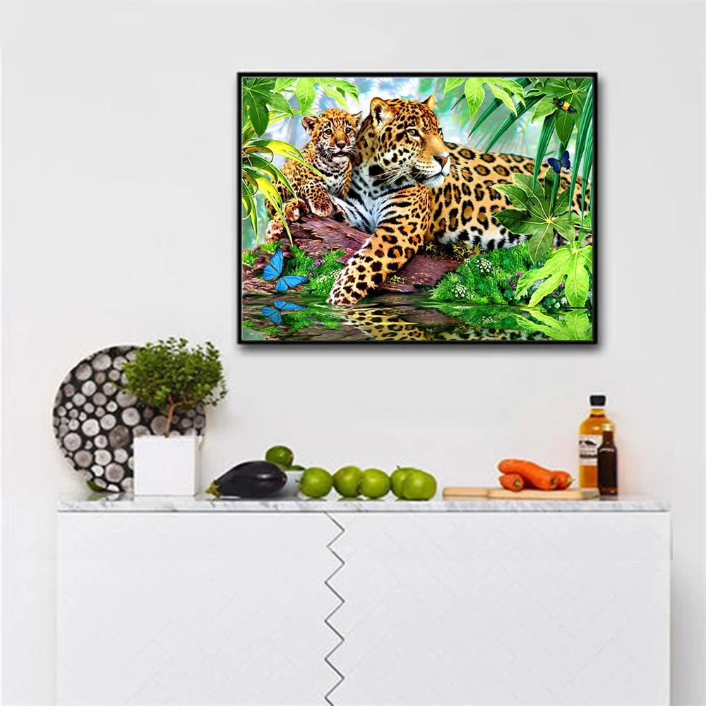Алмазная живопись HUACAN, полный Леопардовый пейзаж, украшение для дома, мозаика, вышивка, наклейки на стену с изображением дерева