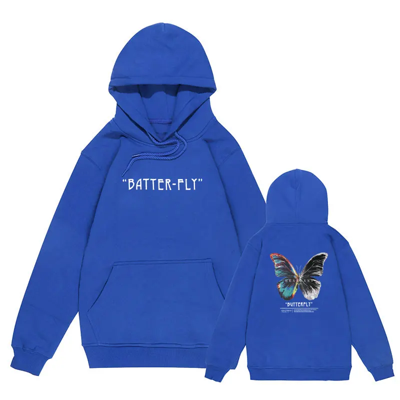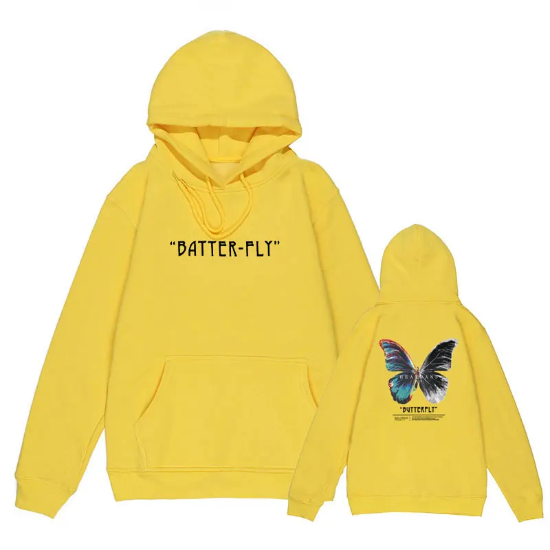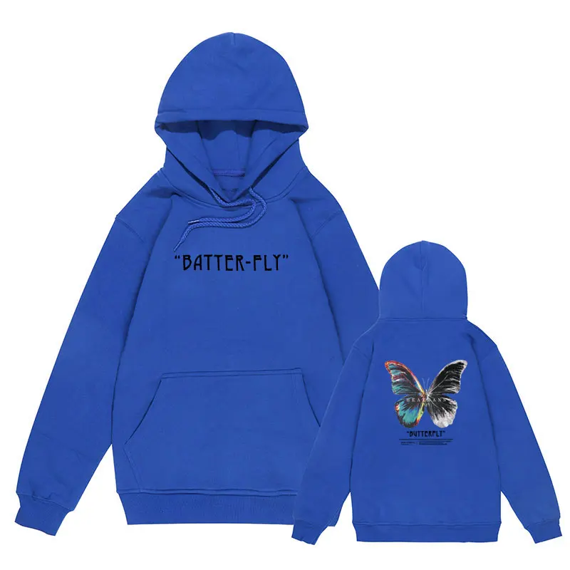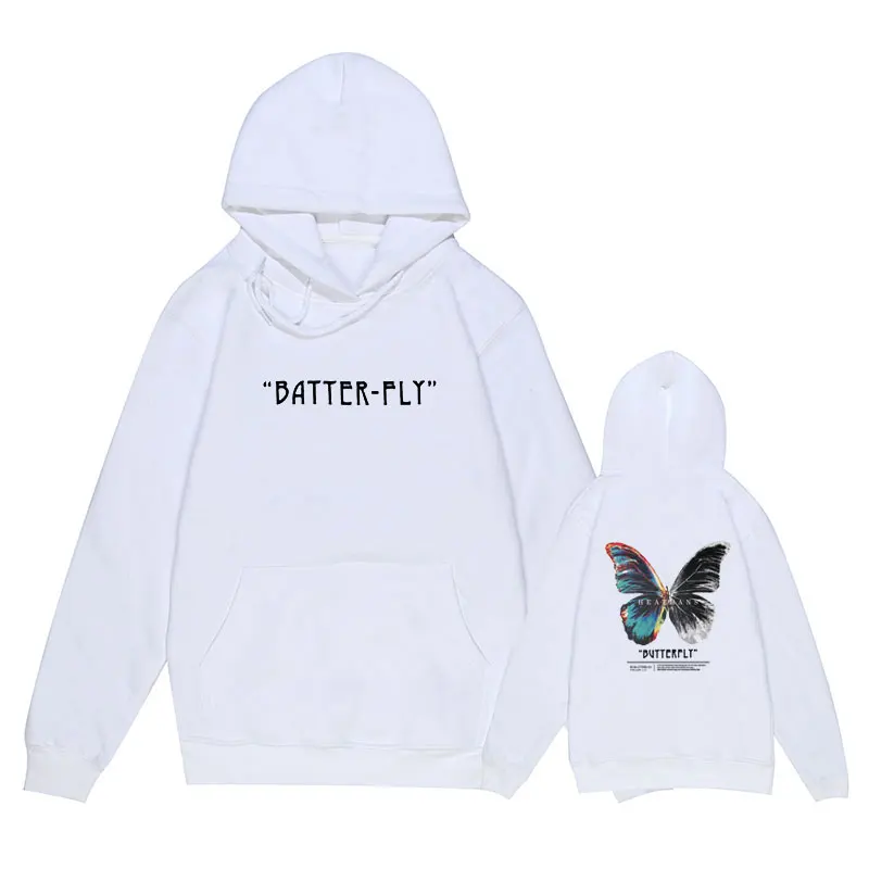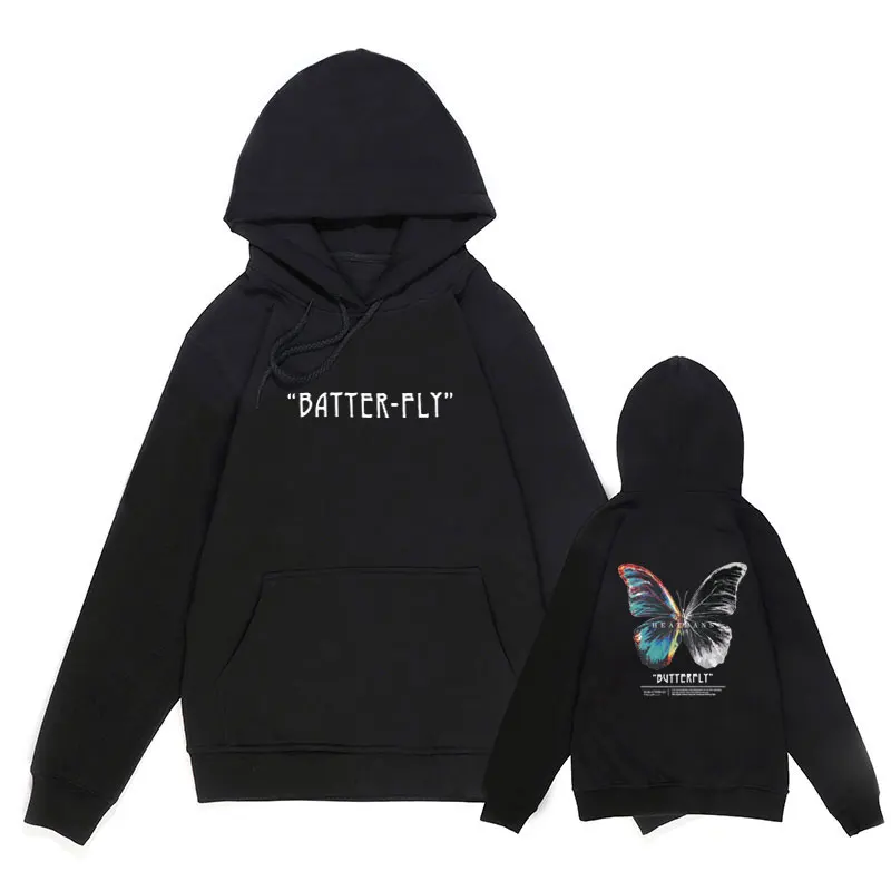 Мужская хлопковая толстовка с капюшоном, черная толстовка в стиле хип-хоп, с капюшоном, с цветными бабочками, уличная одежда в стиле Харадзюку, Осень-зима 2021