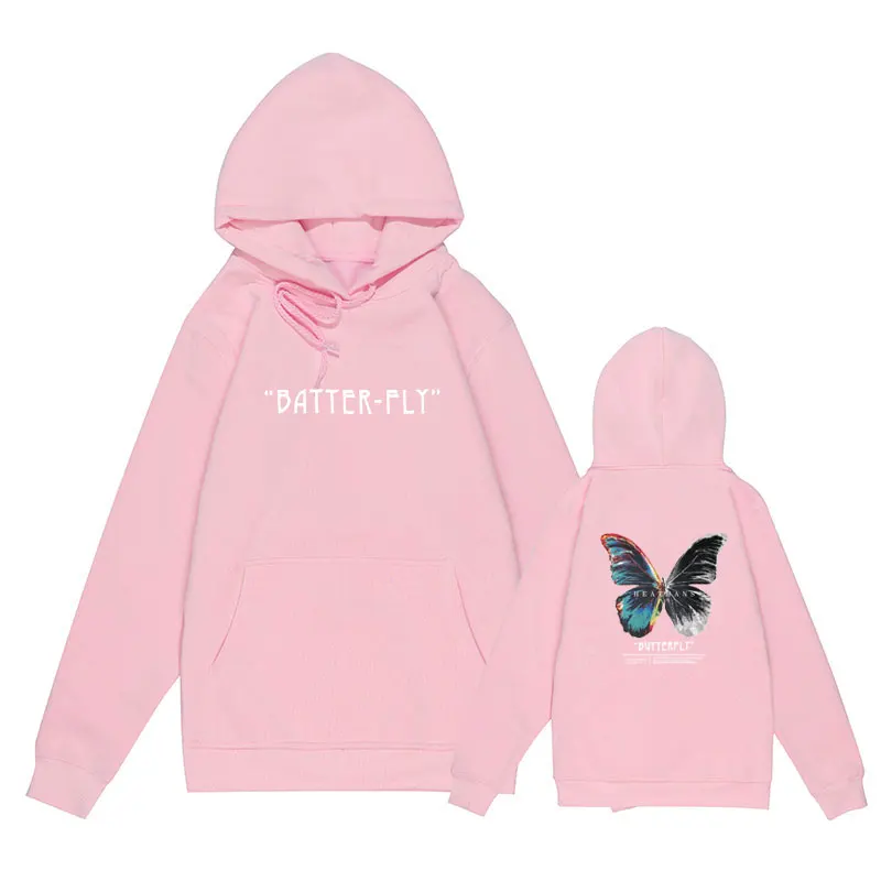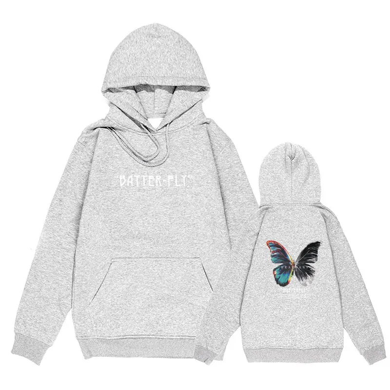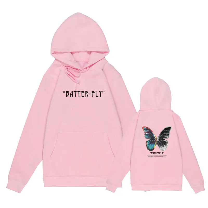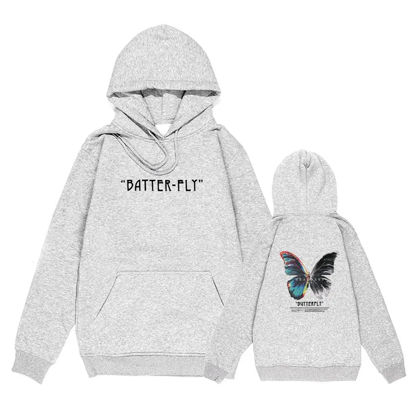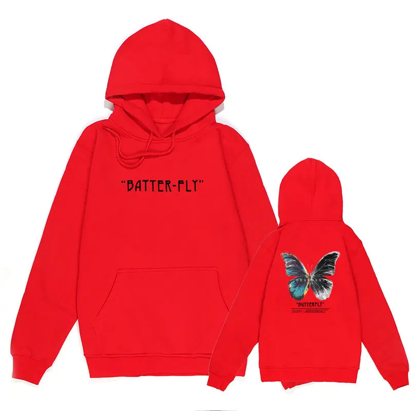 Мужская хлопковая толстовка с капюшоном, черная толстовка в стиле хип-хоп, с капюшоном, с цветными бабочками, уличная одежда в стиле Харадзюку, Осень-зима 2021