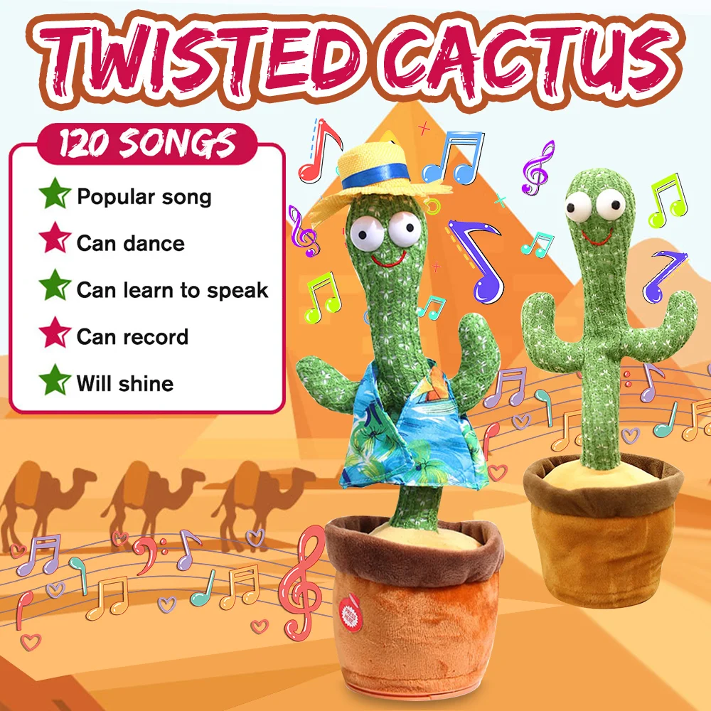 Кактус, плюшевая игрушка, Электрический пение, 120 песен, танцы и скручивание, кактус, светящаяся запись, обучение говорить, скручивающие, плюшевые игрушки