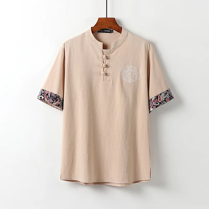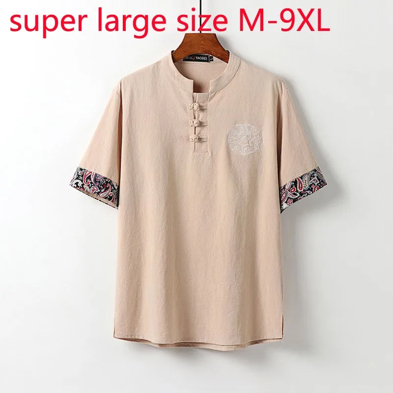 Новое поступление, хлопковая Льняная мужская тонкая летняя футболка с вышивкой и коротким рукавом, с большим принтом, размера плюс, M-4XL5XL6XL7XL8XL9XL