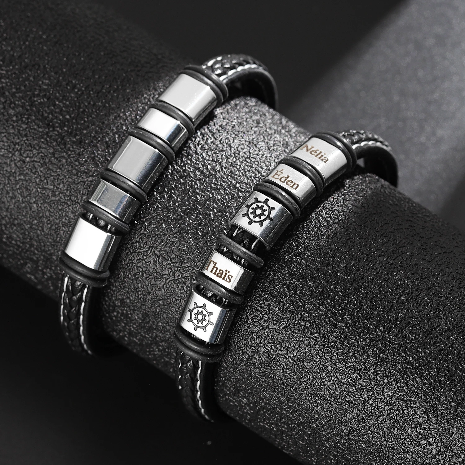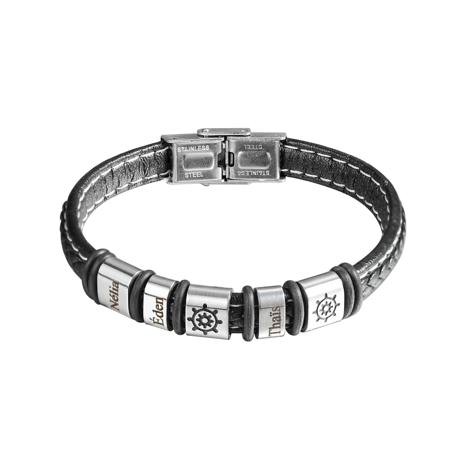 Персонализированные мужские черные плетеные кожаные браслеты беспла...