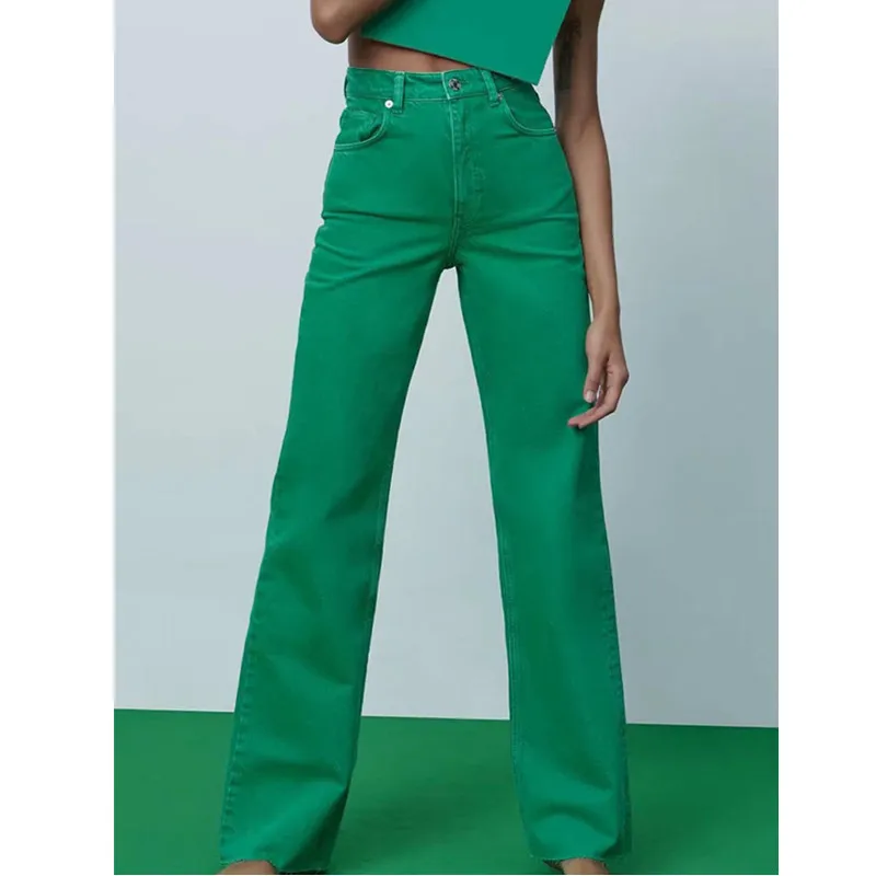 Новинка Весна 2021, женские модные прямые джинсы с завышенной талией, ярко-желтые и ярко-зеленые