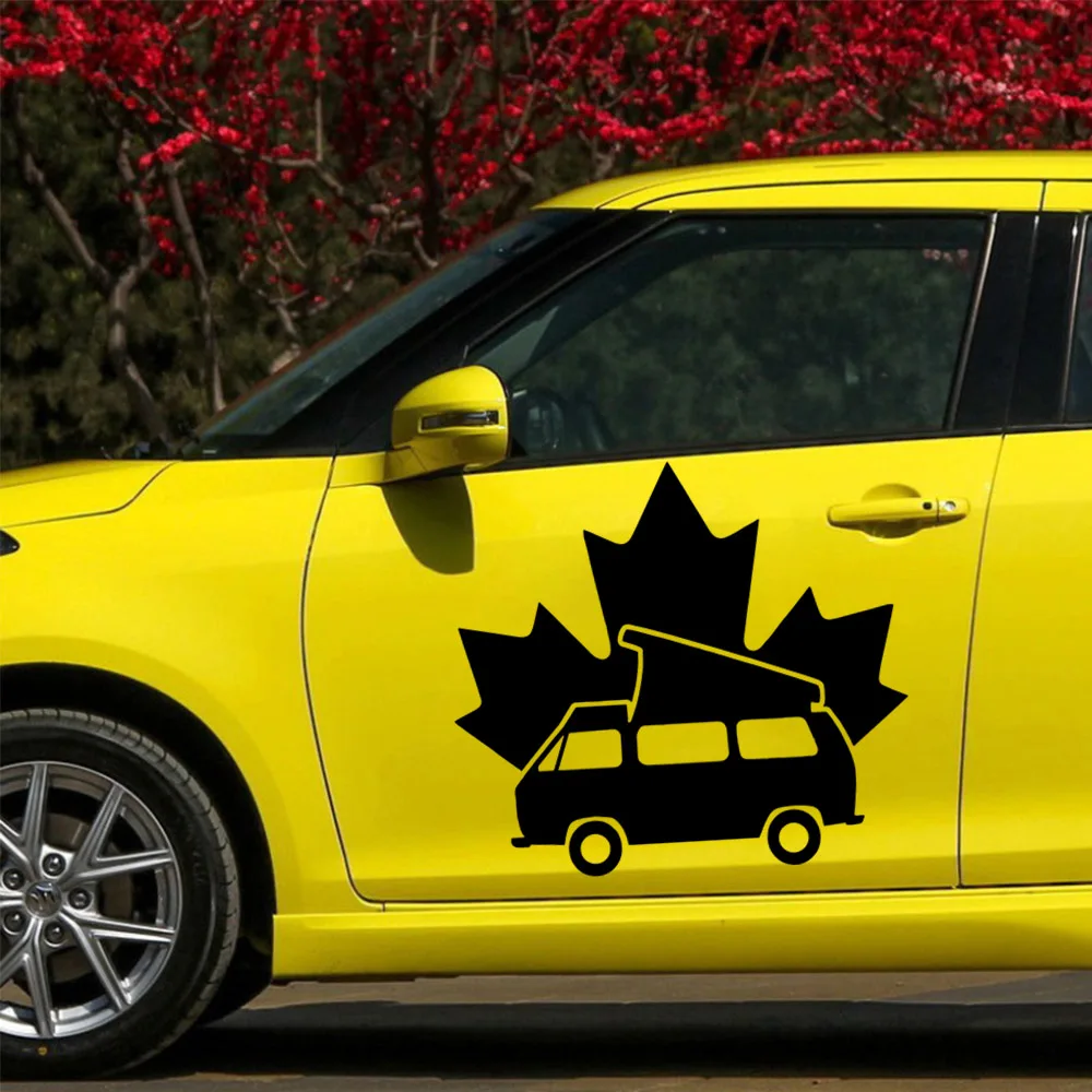 Забавные Стикеры для лагеря, модные виниловые автомобильные декоративные аксессуары, черныебелые наклейки с кленовыми листьями для кемпинга