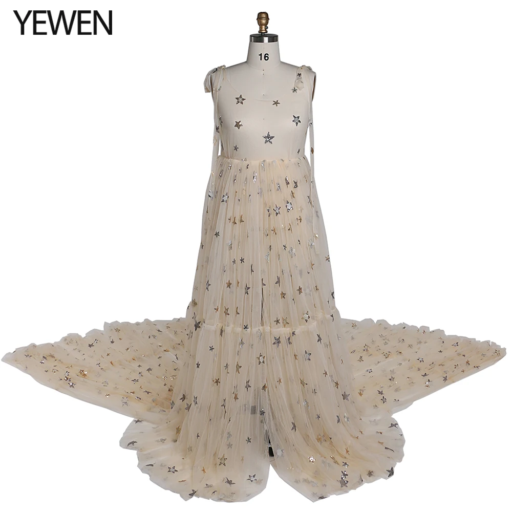 Вечернее платье YEWEN, длинное, со звездами, без рукавов, прозрачное, для фотосессии, для беременных, для вечеринок, размера плюс