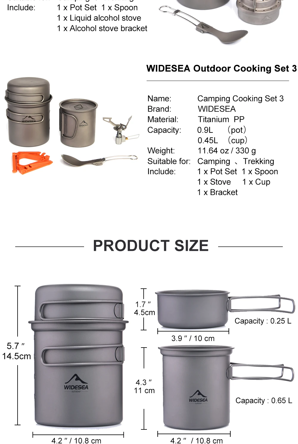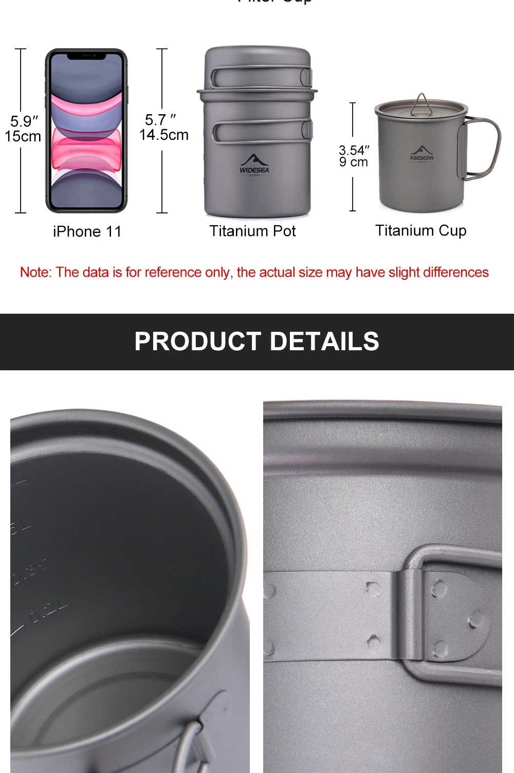 Туристическая горелка Widesea кухонный горшок для готовки Складная ложка, титановая, ульсветильник, комплект посуды