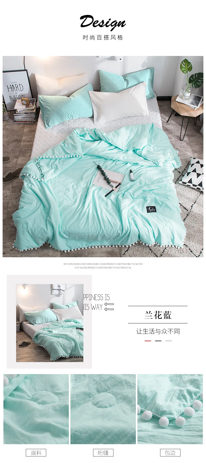 Летние стеганые одеяла с помпоном, дышащие легкие Одеяла для кровати, дивана, путешествий, кемпинга, можно стирать