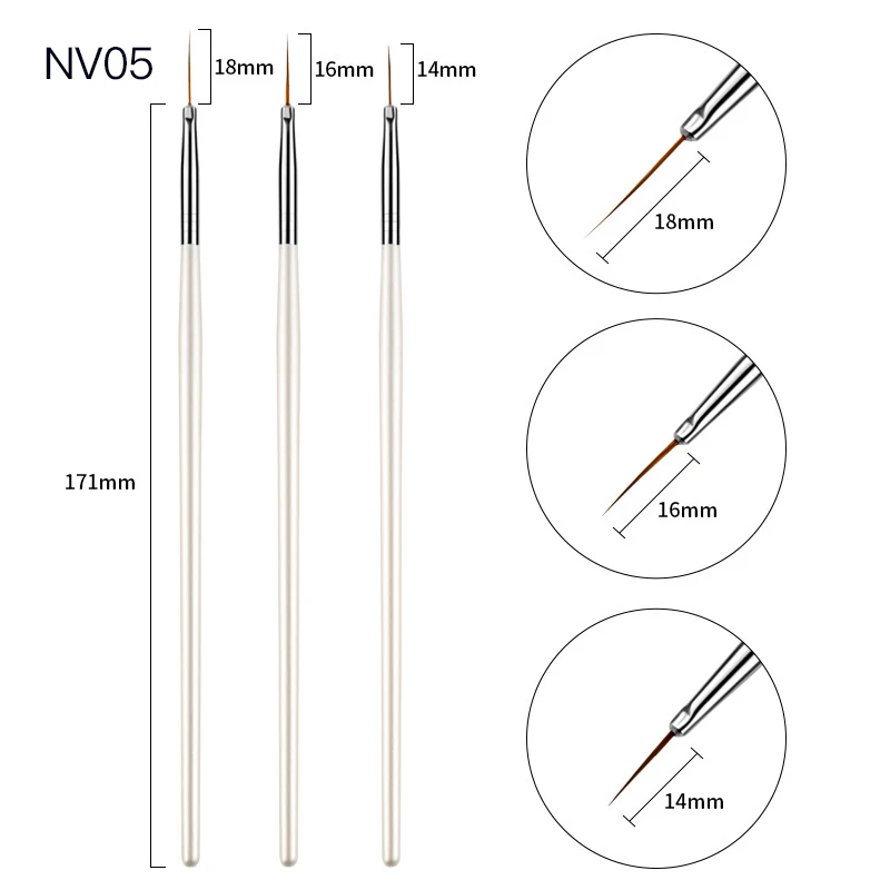 Кисти для наращивания ногтей, акриловые, ультратонкие, 3 шт.