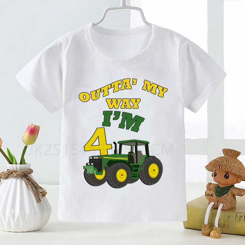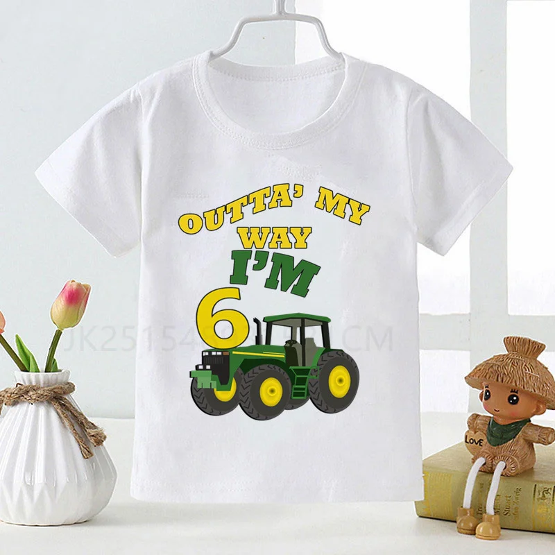 Boy1-9 автомобиля на день рождения; Юбка-американка с принтом Футболка экскаватор для детей на день рождения, для маленьких мальчиков детская одежда футболки для мальчиков и девочек Смешные подарочные футболки подарок