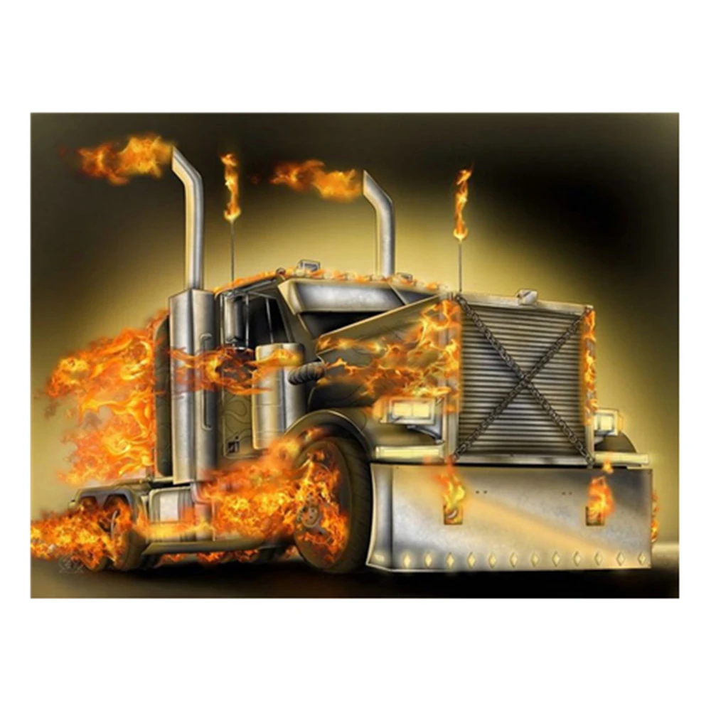 LZAIQIZG камни в форме ромбаНабор для рисования с круглыми камнями и полотном Набор для рисования горящий грузовик настенные наклейки с пейзажами вышивка мозаика пейзажи алмаз искусство