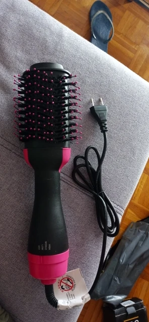 Я довольна феном-щеткой. Для меня размер несколько великоват, т. к. волосы короткие, но это не критично. Щетинки не грубые, приятные для головы. К качеству и доставке претензий нет.