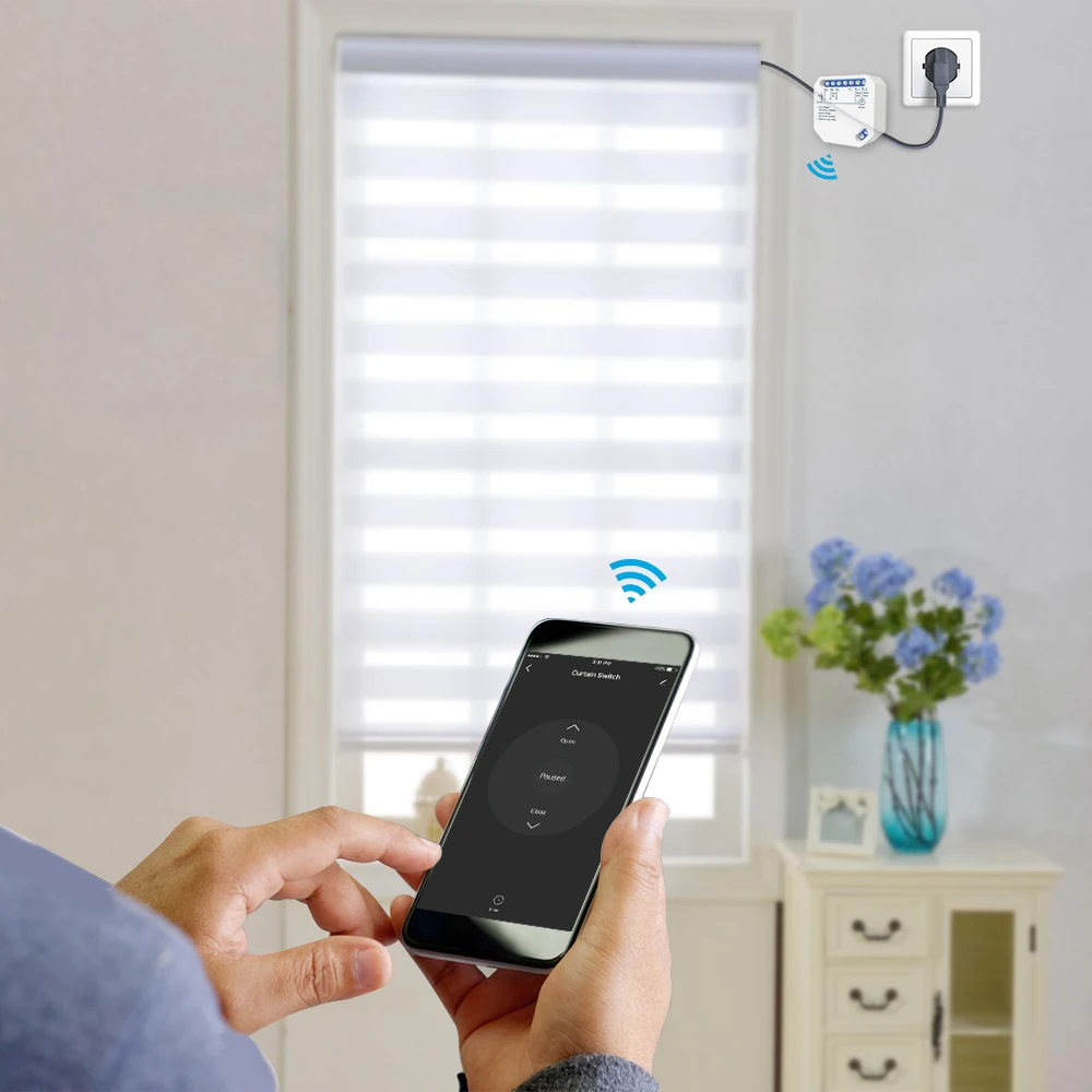 -Бесплатное название приложения: Smart Life, Tuya-Функция таймера, дистанционное управление через приложениеЗапрограммируйте модуль переключателя в приложении «Smart life/tuya», затем шторкой, шторкой, рольставнями можно управлять с помощью телефона, и вы сможете установить расписание для него, например, открыть его в 7:00, закройте в 7:00, после чего ваша штора может открываться или закрываться автоматически, когда время истекло.Вы можете управлять своей умной шторкой с помощью мобильный телефон в любое время и в любом месте при помощи сети, Управляйте своей шторкой в любом месте с помощью мобильных сетей 2G, 3G, 4G