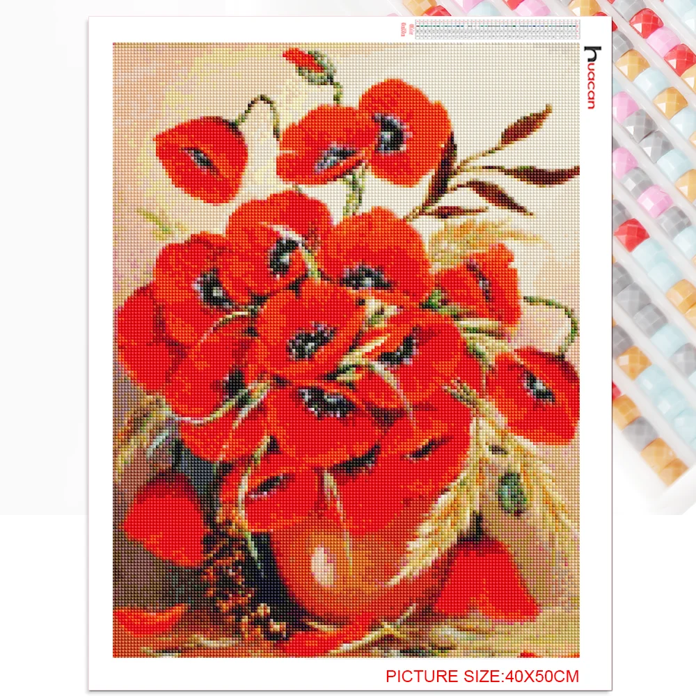 Набор для алмазной вышивки Huacan, картина с Маком, ваза, Цветочная мозаика, картины для интерьера, творческие хобби, домашний декор, 5D