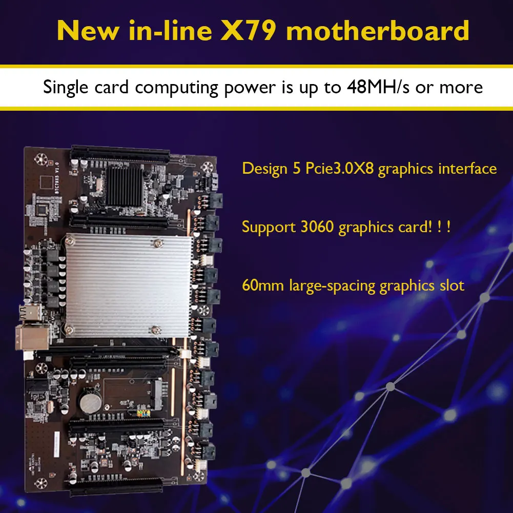 Материнская плата X79 для майнинга, материнская плата Btc, пять кар...