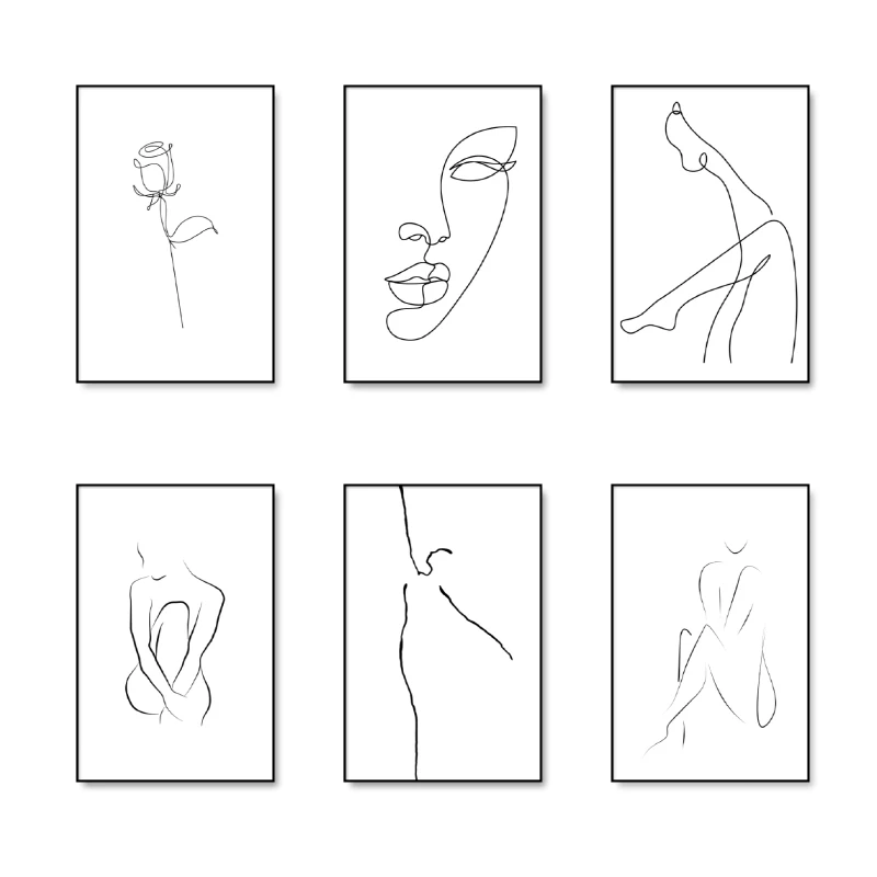 Минималистичный рисунок по линии розы, абстрактная живопись, сексуальная женщина, боди-лайн, искусство, холст, плакат, картина для галереи, домашний декор