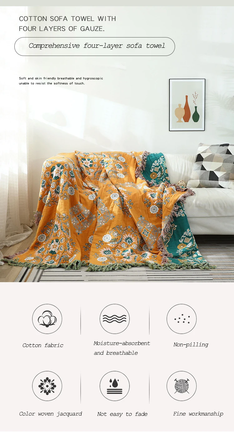 Хлопковое покрывало для гостиной в Северной Европе, дышащее шикарное большое покрывало для сна и дивана, для путешествий