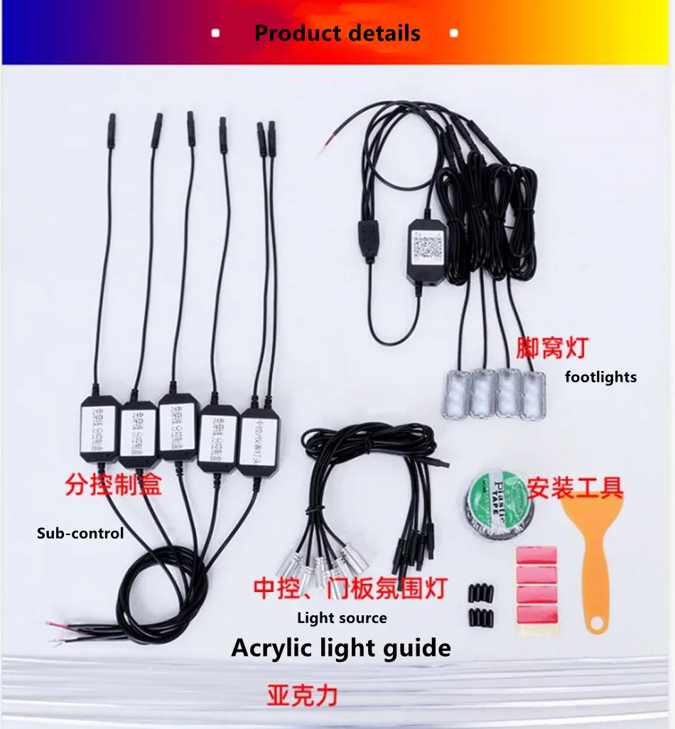 RGB Автомобильный интерьер оптический акриловая полоска окружающий светильник приложение управление Bluetooth атмосферная лампа Беспроводной Автономный блок подключения