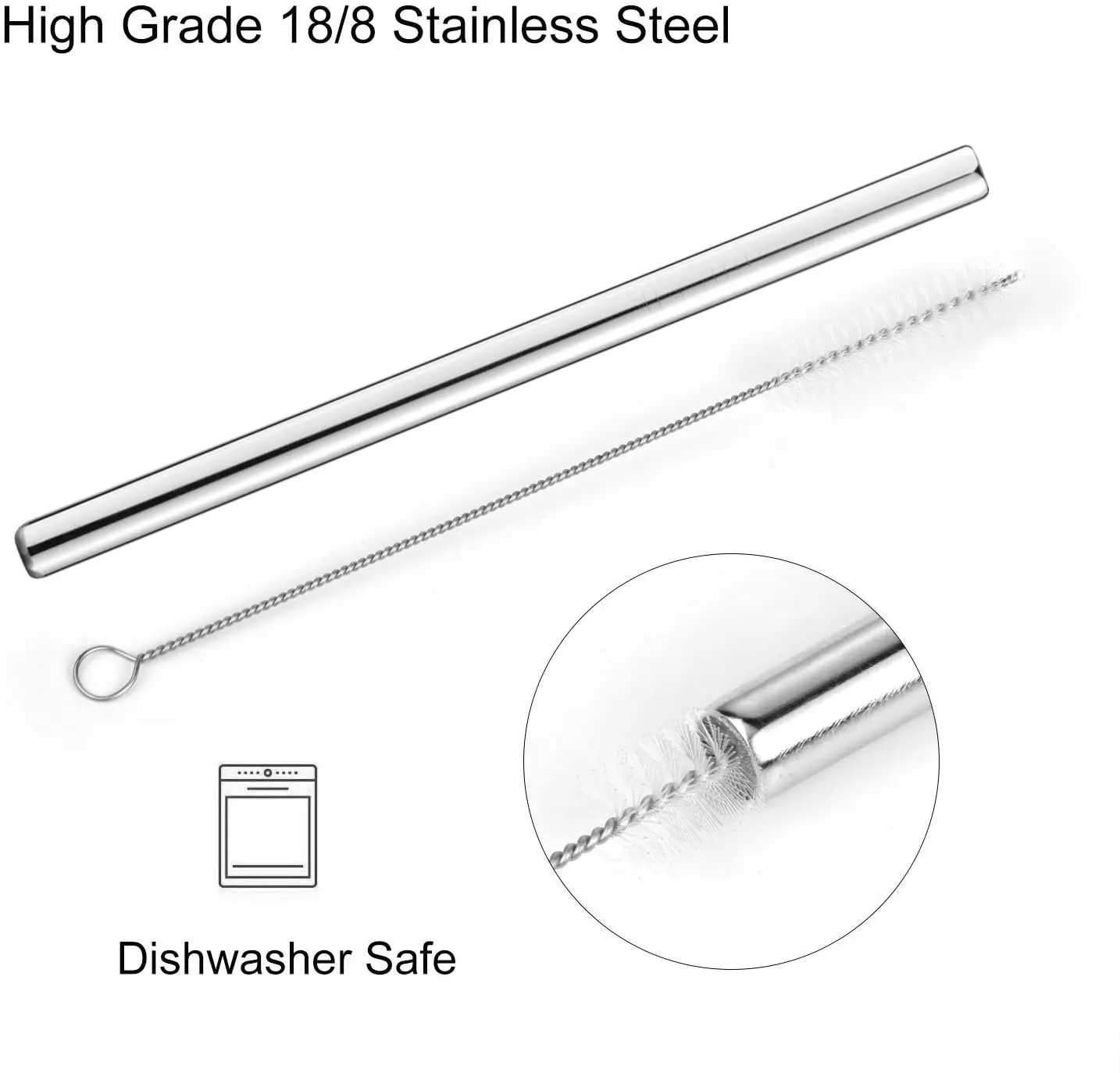 Легко чистить и мыть в посудомоечной машине-- В каждую упаковку входит 1 щетка для чистки этих металлических соломинок или просто легко чистить, бросив их в посудомоечную машину, сохраняя внутреннюю поверхность трубочки чистой и без металлического привкуса.