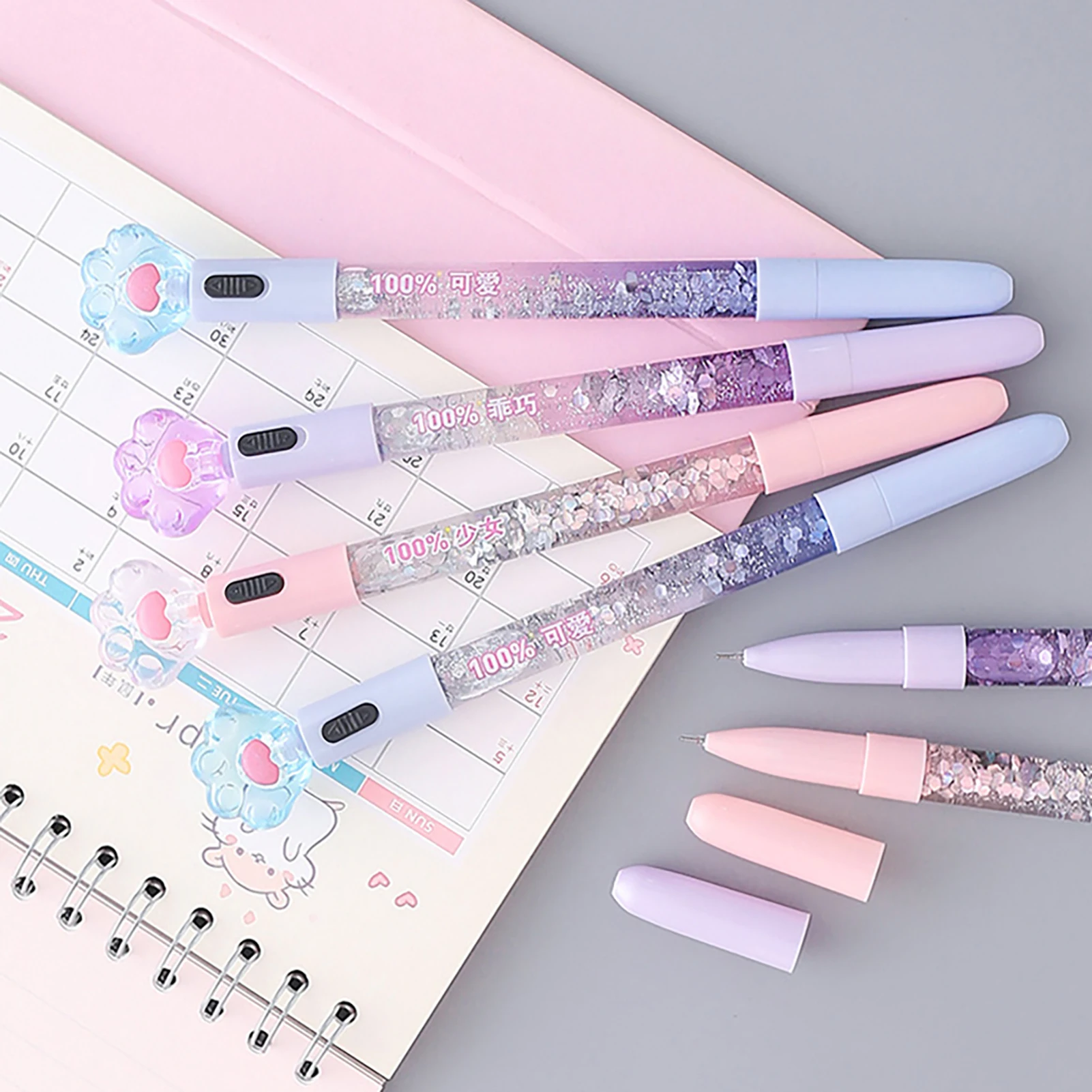Прозрачная светящаяся гелевая шариковая ручка с милыми кошачьими лапами для офиса, школьные принадлежности, черная чернильная гладкая пишущая ручка с заправками