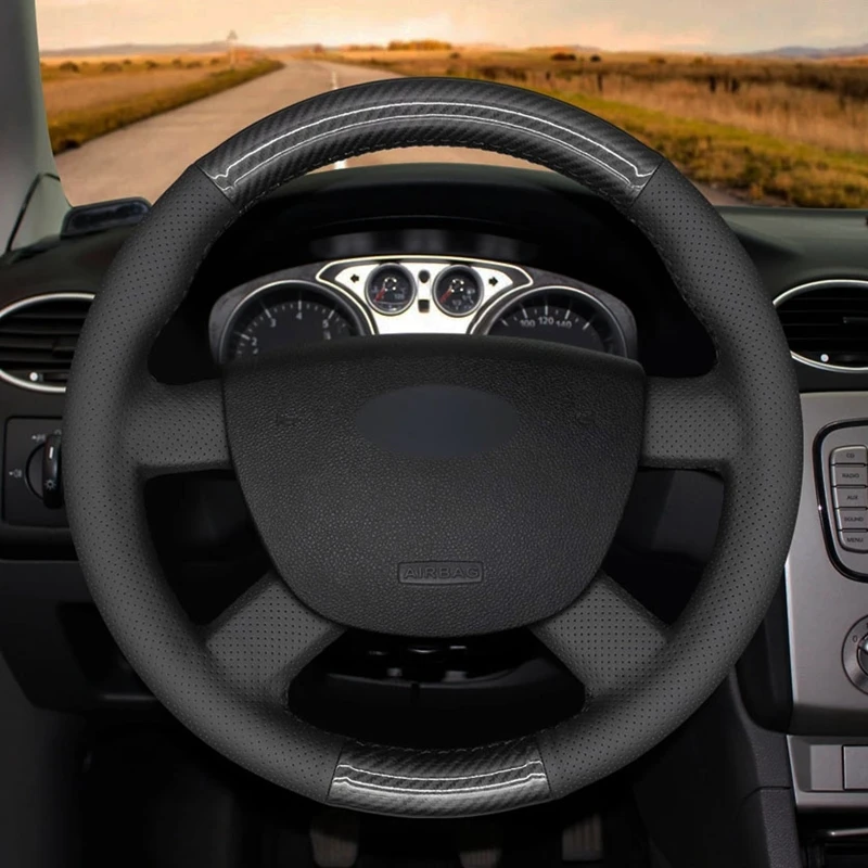Чехол рулевого колеса автомобиля Черное ПУ углеродное волокно для A...
