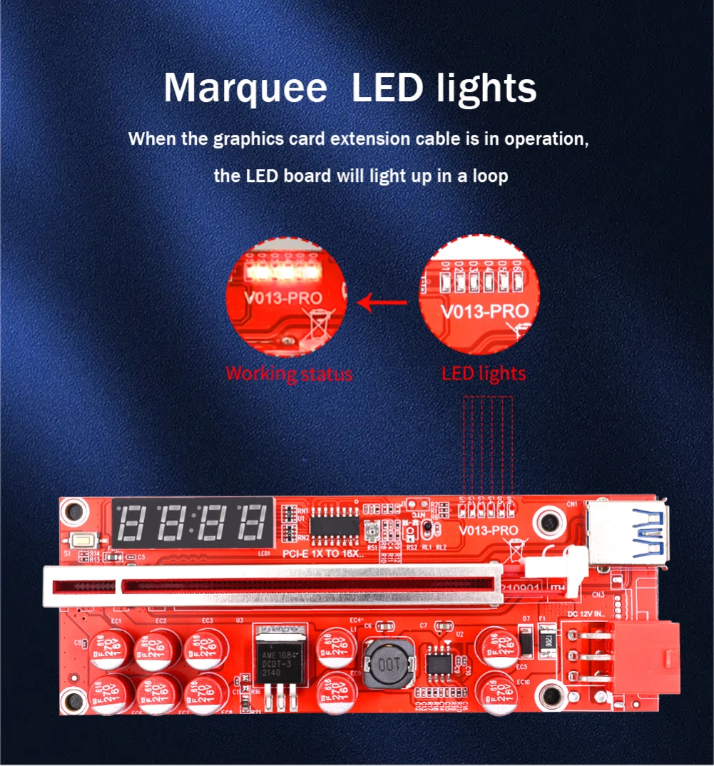 Этот V013 Pro PCIE является последним удлинителем видеокарты с датчиком температуры и напряжения.