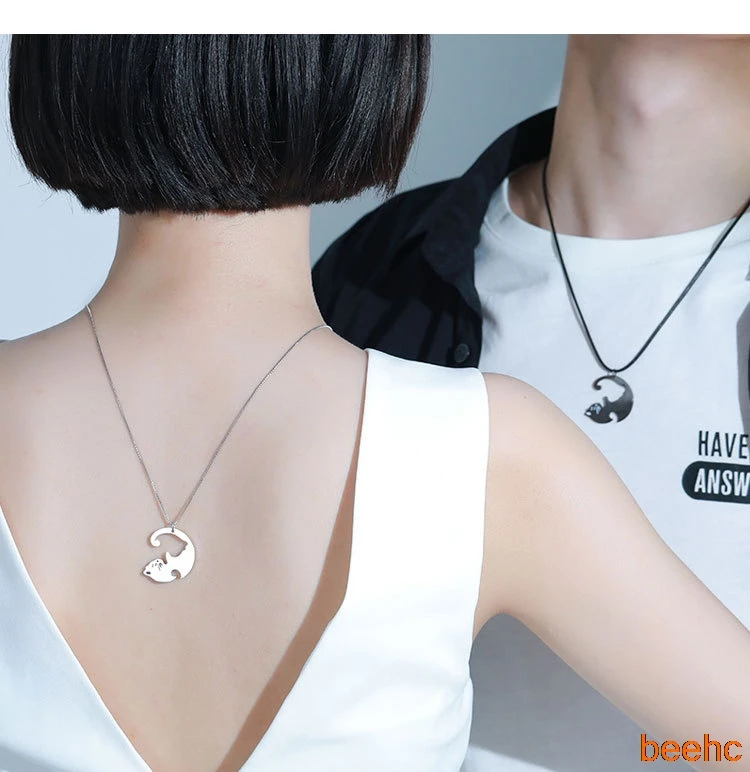 Ожерелье с подвеской в виде черно-белого кота для влюбленных пар, кошачьи воротники-ожерелья bff best friend yinyang, ювелирные изделия из нержавеющей стали