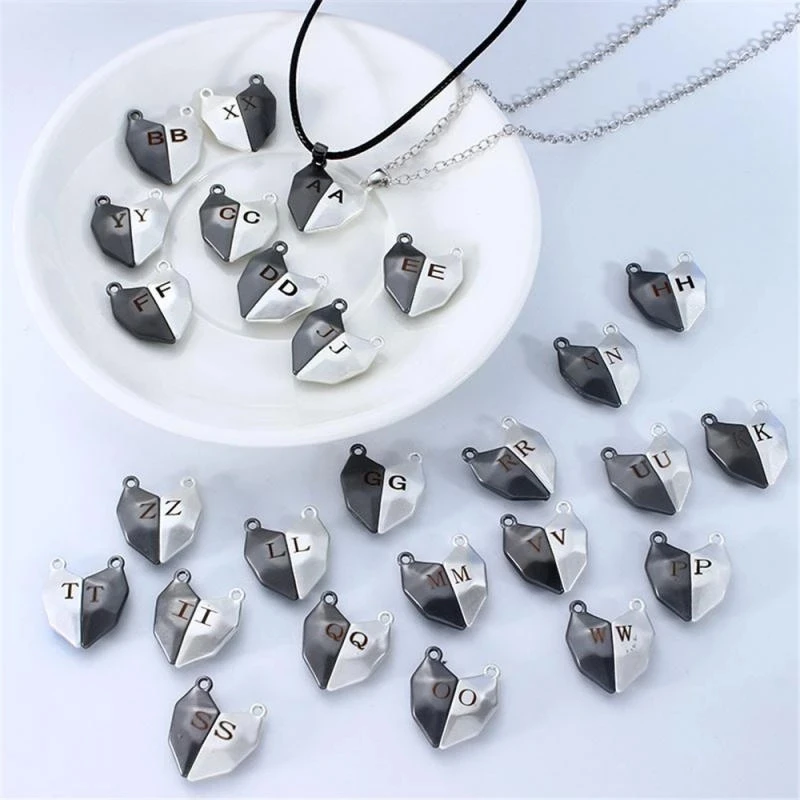 Ожерелье для влюбленных, с надписью, 1 пара, магнитное притяжение, сердце, камень, набор для влюбленных, для женщин, мужчин, магнитный подарок