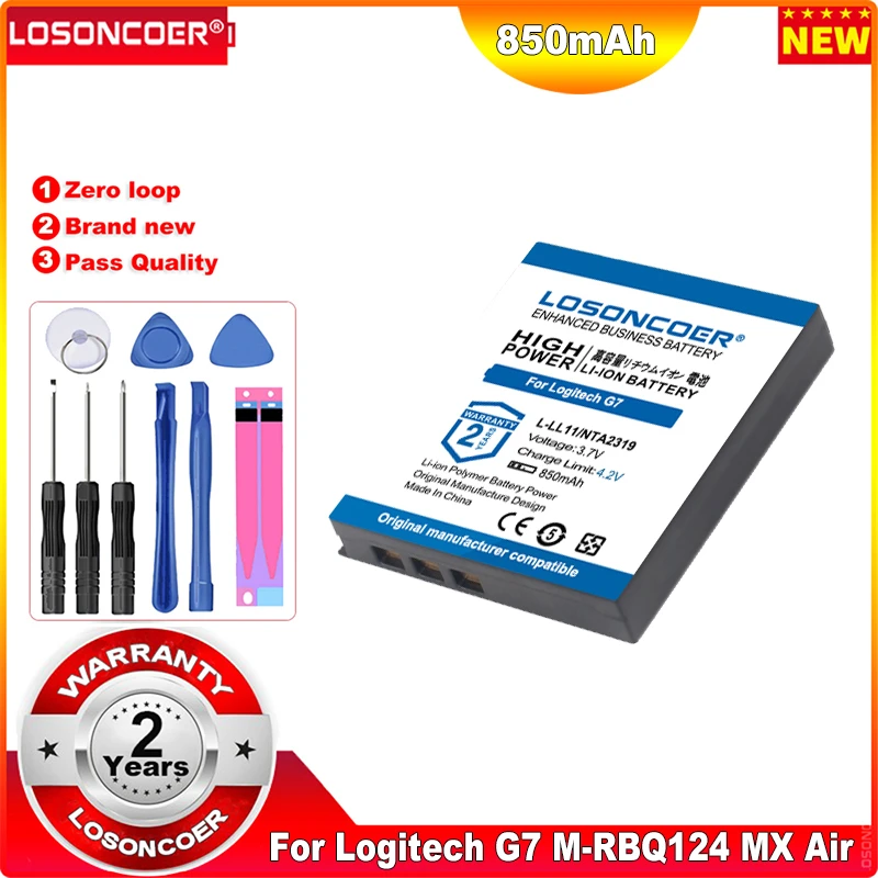 Оригинальный LOSONCOER L-LL11, NTA2319 850mAh аккумулятор для Logitech G7 Лазерная беспроводная мышь, M-RBQ124, MX Air 190310-2000 F12440020