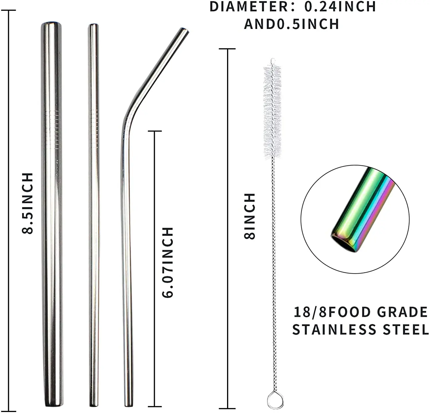 Высококачественная нержавеющая сталь 18/8 304: Изготовлен из высококачественной пищевой нержавеющей стали 304, питьевые металлические соломинки являются естественным выбором для всех, без BPA, без пластика, без металлического привкуса, без окисления, цветной, безопасный в посудомоечной машине, многоразовые и экологически чистые. Один набор соломинок из нержавеющей стали используется для долгих лет-замена сотни или тысячи пластиковых соломинок С внешним Диаметр 0,25 дюйма (6 мм) и 0,48 дюймов (12 мм), Идеально подходит для жидких напитков, таких как вода, коктейль, кофе, чай со льдом, капучино, молочные коктейли, смузи, йогурт и т. д. Еще один шаг ближе к экологически чистому образу жизниИ обрезает одноразовые соломинки удобным способом. Как зеленая альтернатива пластику, безопаснее для окружающей среды, и которая уменьшает загрязнение белого и защищает океан. Легко чистить и мыть в посудомоечной машине-Каждый пакет поставляется с 1 чистящей щеткой для очистки этих металлических соломинок или просто легко чистить, бросив их в посудомоечную машину, держите интерьер трубки чистым и без металлического вкуса. Спецификация: Маленький размер: 6x215ммБольшой размер: 12x215ммМатериал: высококачественная нержавеющая сталь 304Цвет: 7 цветов на выбор Посылка включает:Как показано на опции