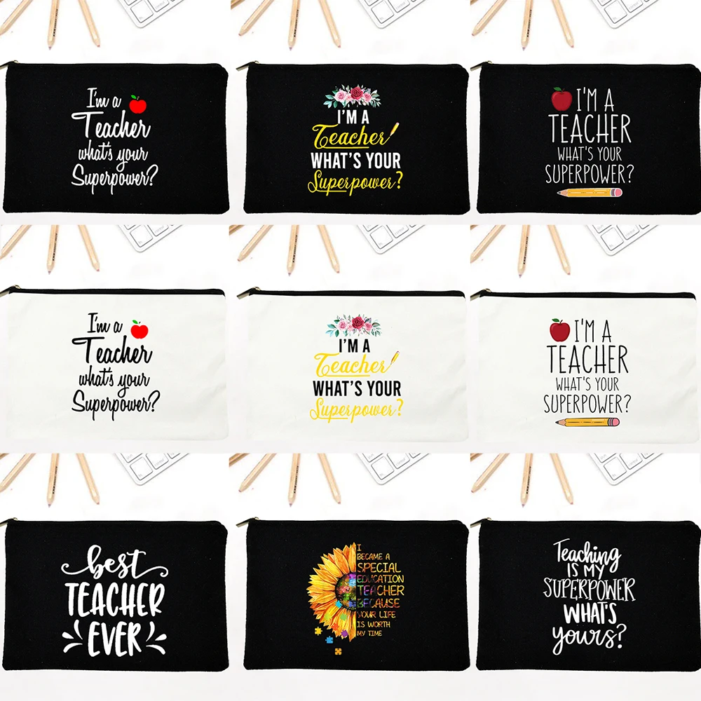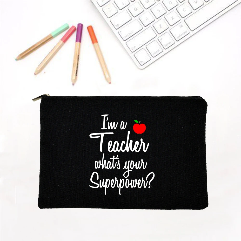 Холщовая косметичка для учителей Is My Superpower, карандаш для учителей, косметичка на молнии, сумка для туалетных принадлежностей, органайзер, кошелек, дорожный подарок