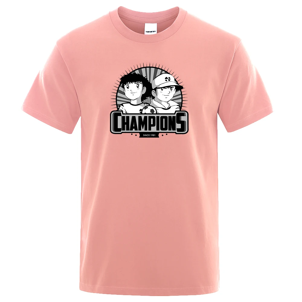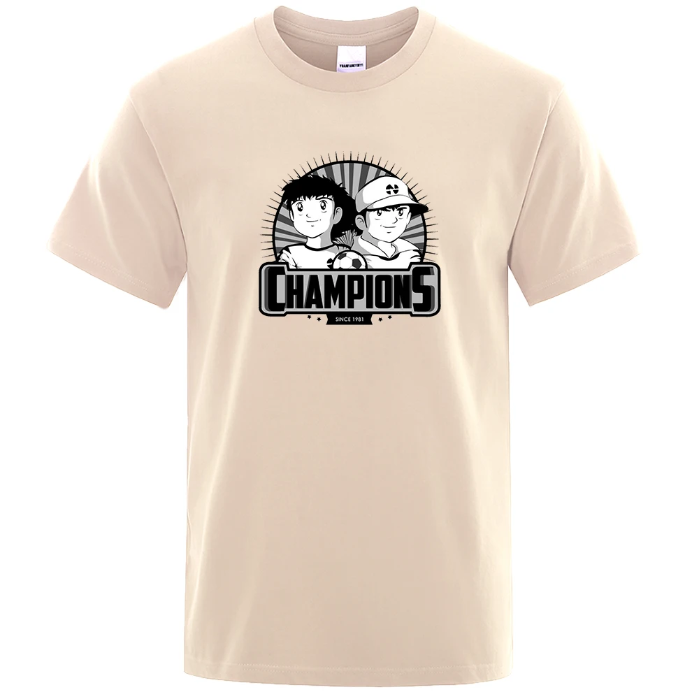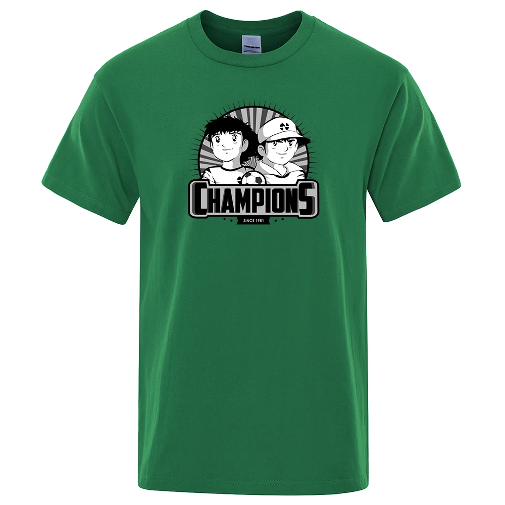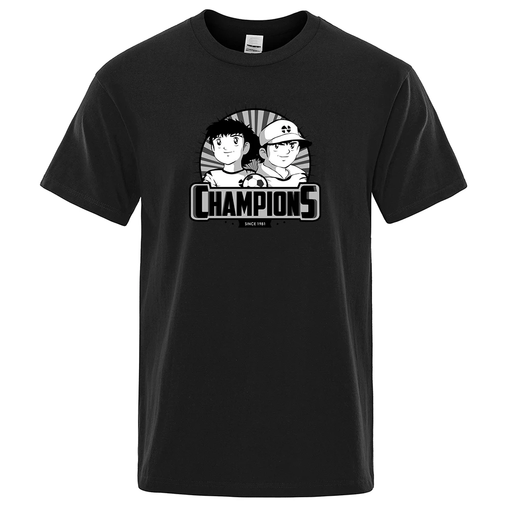 Мужские футболки с забавным принтом Captain Tsubasa, Модные свободные футболки, простые винтажные футболки, крутые мужские футболки с круглым вырезом и короткими рукавами