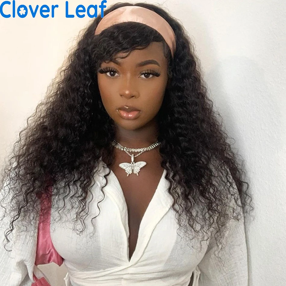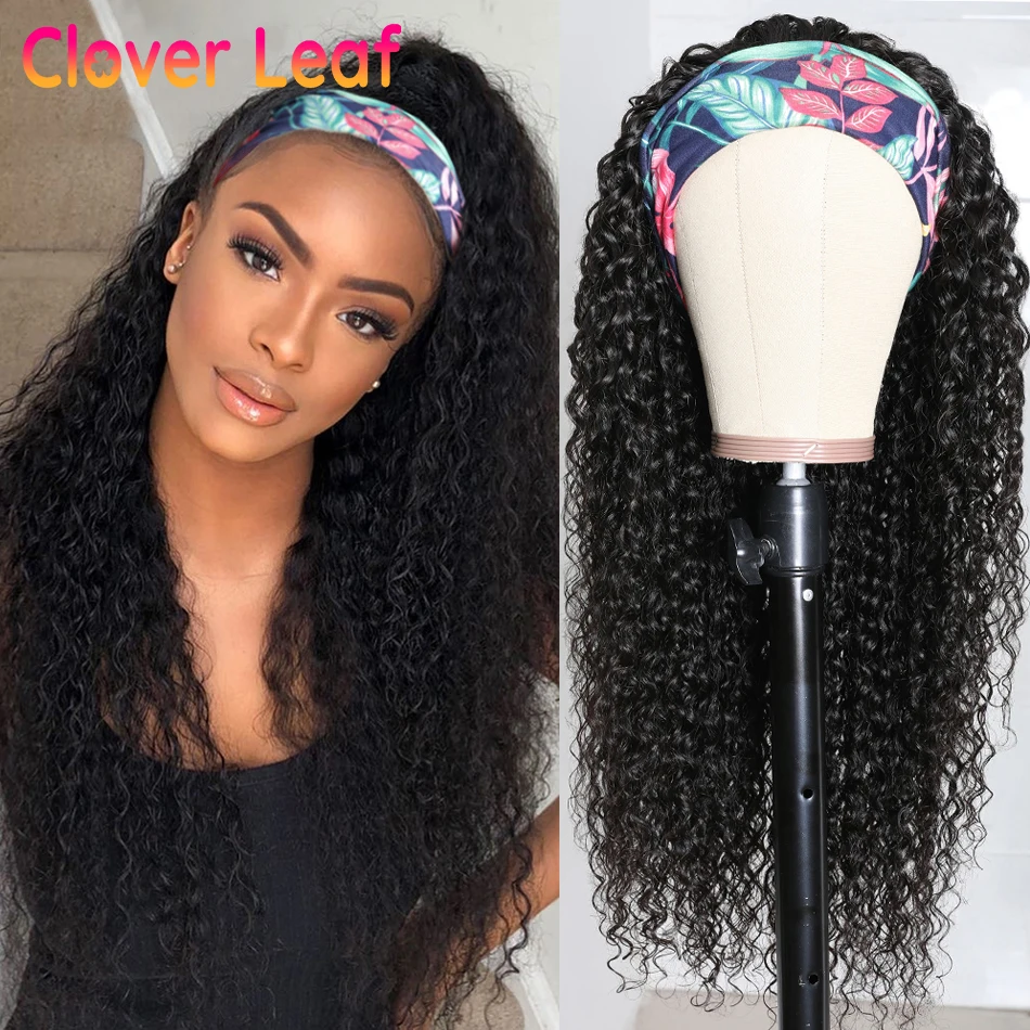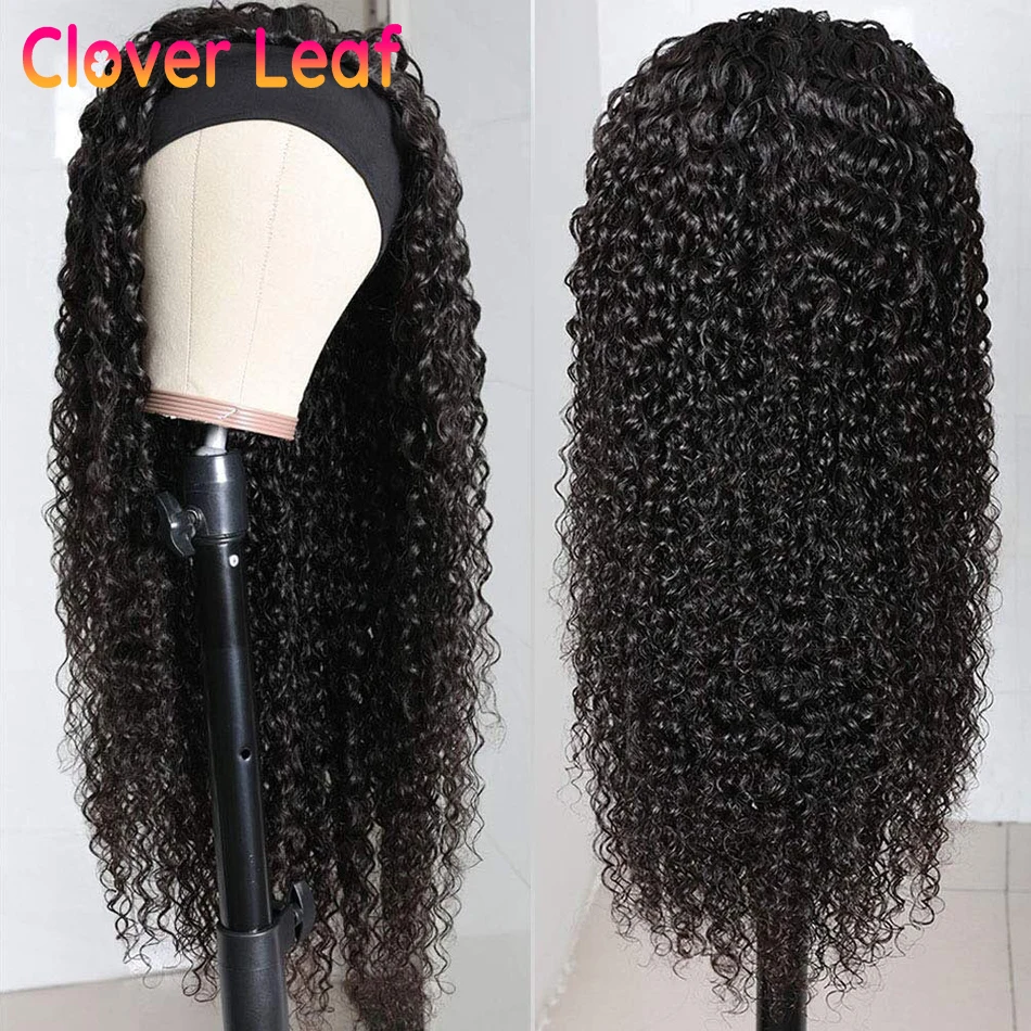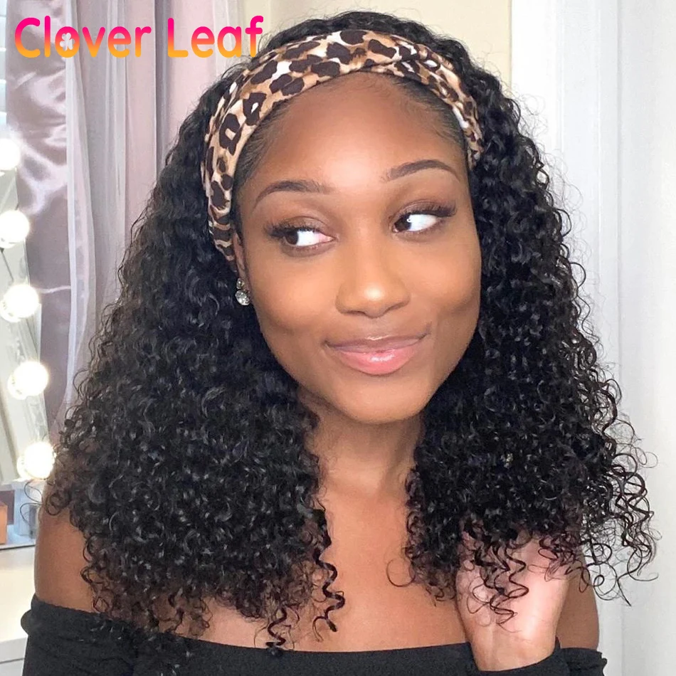 Клеверная листовая вьющиеся парик с головной повязкой 150% Remy бразильский парик с головной повязкой человеческие волосы курчавые вьющиеся парик с головной повязкой с Бесплатная повязка на голову для Для женщин