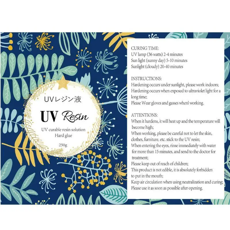 Наша УФ-смола готова к использованию и может мгновенно вылечиться в течение нескольких минут с 36W УФ-светильник или солнечный светильник.