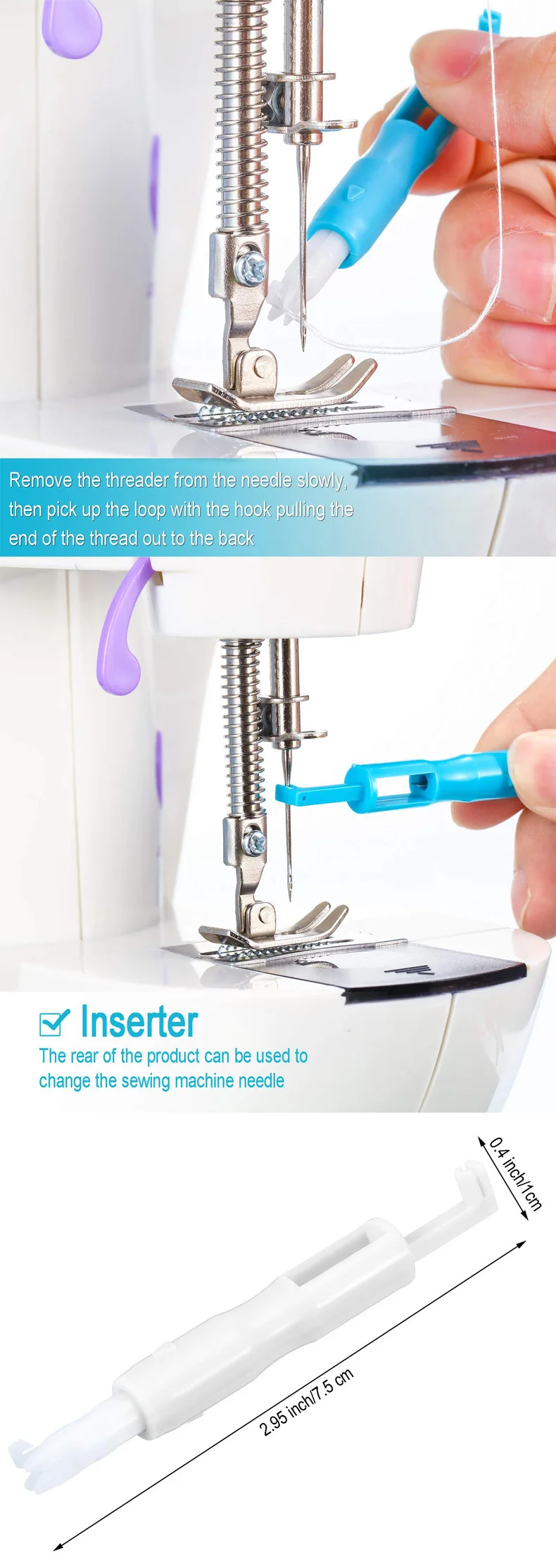 3. Двойные функции: для продевания резьбы может помочь пропустить нить через игольное ушко удобно, в случае плохого глаза или плохого освещения; Для вставки крепко удерживает иглы, чтобы предотвратить падение во время смены игл.