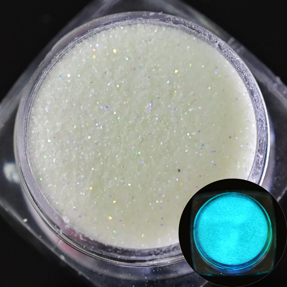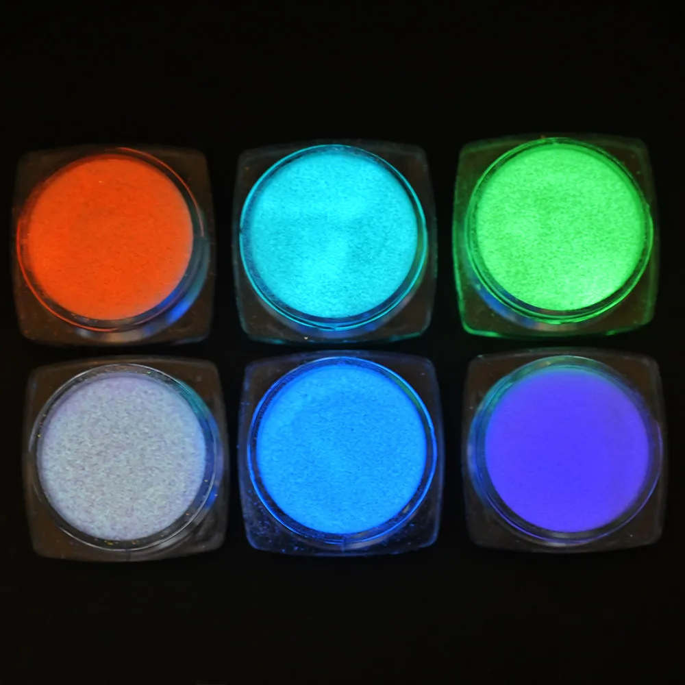 1 баночка, 6 цветов, светящийся блеск для ногтей, светится в темноте порошок, эпоксидный лак для ногтей, украшение, Супер Блестящая дискотека, сахарная пыль, VI-V9