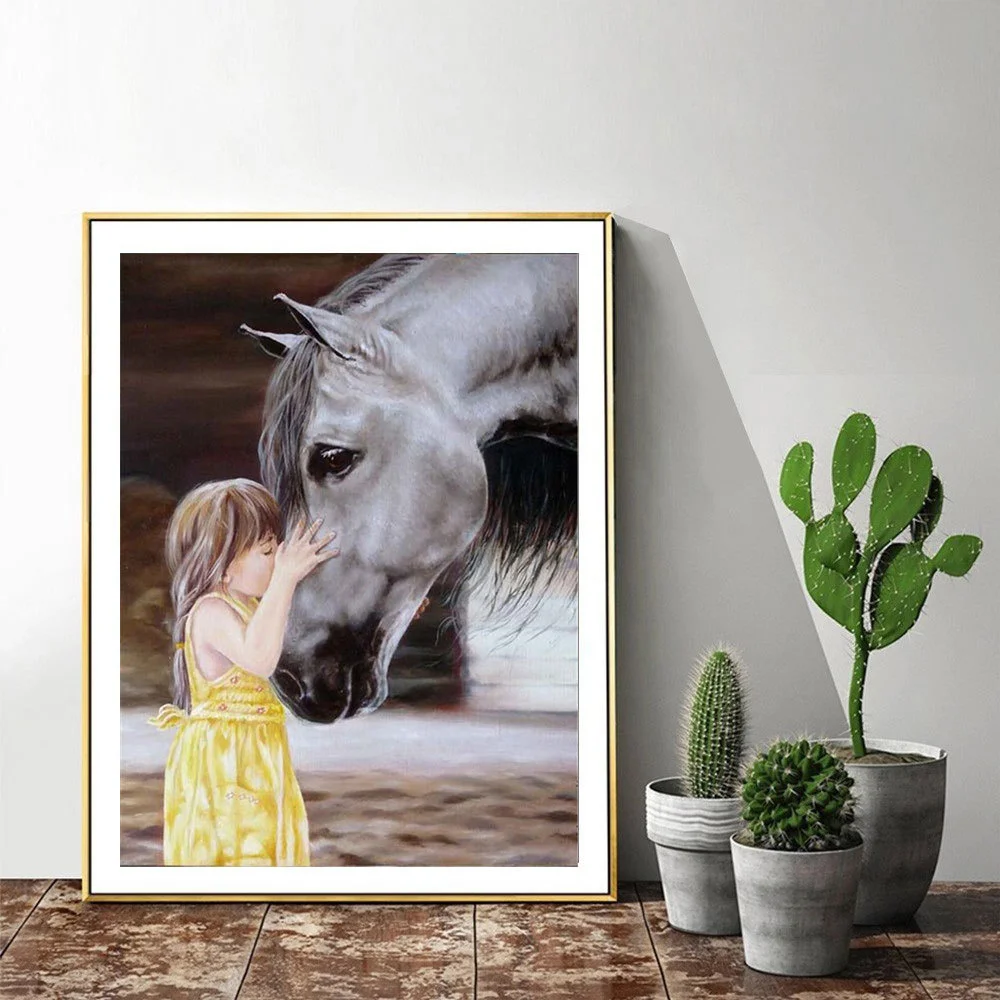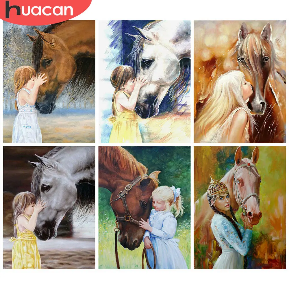 HUACAN 5d алмазная живопись Лошадь Сделай Сам мозаика животных полная квадратная Алмазная вышивка, девушка портрет домашнего декора набор для рукоделия