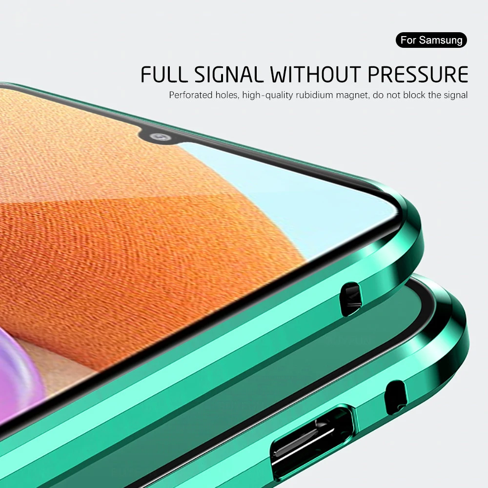Алюминиевый магнитный металлический бампер откидной двухсторонний стеклянный чехол для Samsung Galaxy A32 4G Sansung Sumsung SamsungA32 A 32 6,4 "Чехол
