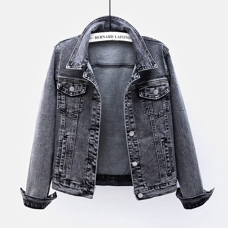 Осенняя Женская модная винтажная укороченная джинсовая куртка больш...