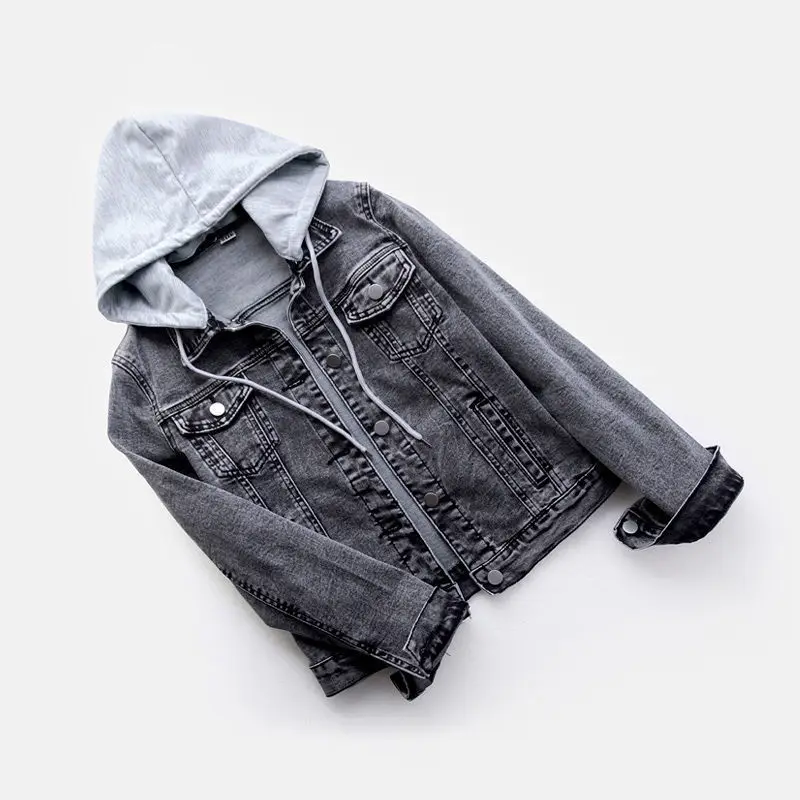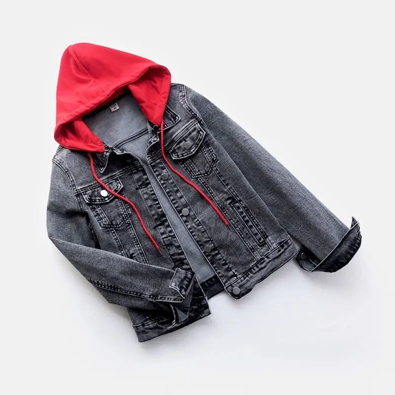 Куртка женская джинсовая короткая с длинным рукавом, модная Свободная верхняя одежда из денима, с капюшоном, в стиле пэчворк, большие размеры, Z441, осень 2021
