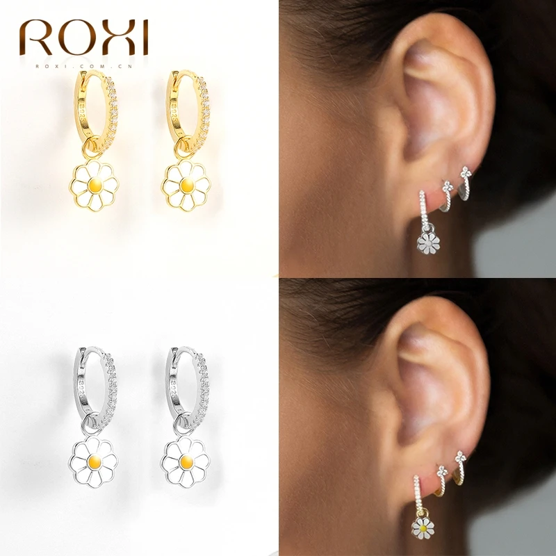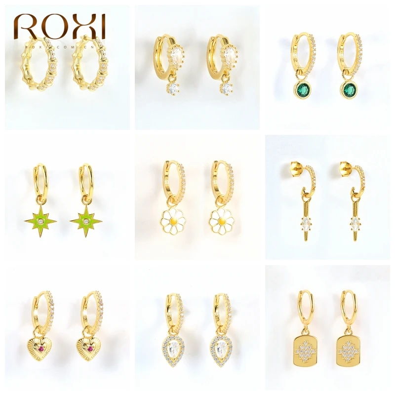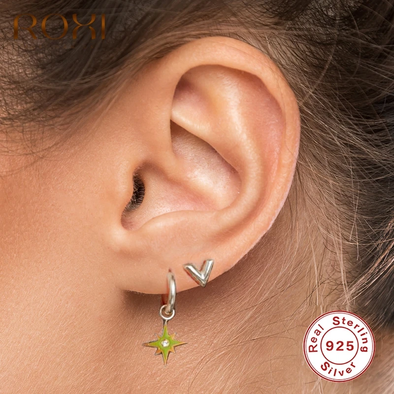 Геометрические серьги ROXI для женщин, пирсинг кольцо из стерлингового серебра 925 пробы, ювелирные изделия, подарки для вечевечерние