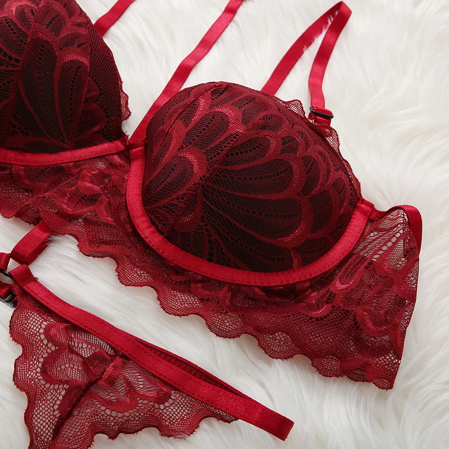 Кружевная вышивка, бандаж, пуш-ап, три предмета, женское белье, низкая талия, трусики с подвязкой, эротическое белье, стринги