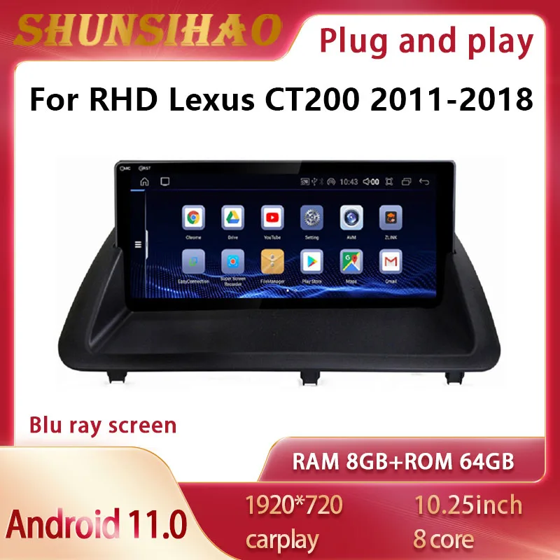Товар Подходит для: Lexus CT200 2011-2018 низкого классаПодходит для оригинального автомобиля, без джойстика, без экранаХит продаж:1. Поддержка операционной системы: Android.2. Поддержка высокого разрешения 1920*7203. Поддержка ПЗУ: 64 Гб/МБ4. Поддержка ОЗУ: 8 Гб.5. Поддержка ЦП: 8 ядер6. Поддержка емкости нескольких сенсорных экранов.Особенность:1. Поддержка сенсорного экрана 10,25 дюйма2. Поддержка подключения телефона Android и iPhone (зеркальная ссылка)3. Встроенная система GPS-навигации.4. Поддержка функции двух зон.5. Поддержка воспроизведения видео 1080P.6. Поддержка высокоточного воспроизведения музыки.7. Встроенный приемник Wi-Fi.8. Поддержка управления рулевым колесом.9. Поддержка USB-входа.10. Поддержка отображения даты и времени.11. Поддержка музыки по Bluetooth и телефона по Bluetooth.12. Поддержка управления папками.13. Поддержка графического пользовательского интерфейса.14. Поддержка установки приложений.15. Встроенный микрофон или поддержка внешнего микрофона.16. Поддержка функции календаря.17. Поддержка оригинальной системы автомобильного усилителя.18. Поддержка функции play store.19. Поддержка функции камеры заднего вида (опционально).20. Поддержка функции carplay (опционально).Примечание:1. Мы предлагаем бесплатный ремонт в течение одного года с даты покупки.2. Если повреждения вызваны чрезмерным износом, грязью, неправильным использованием, неправильной установкой/эксплуатацией, несчастным случаем или ремонтом несанкционированным лицом, гарантия аннулируется.