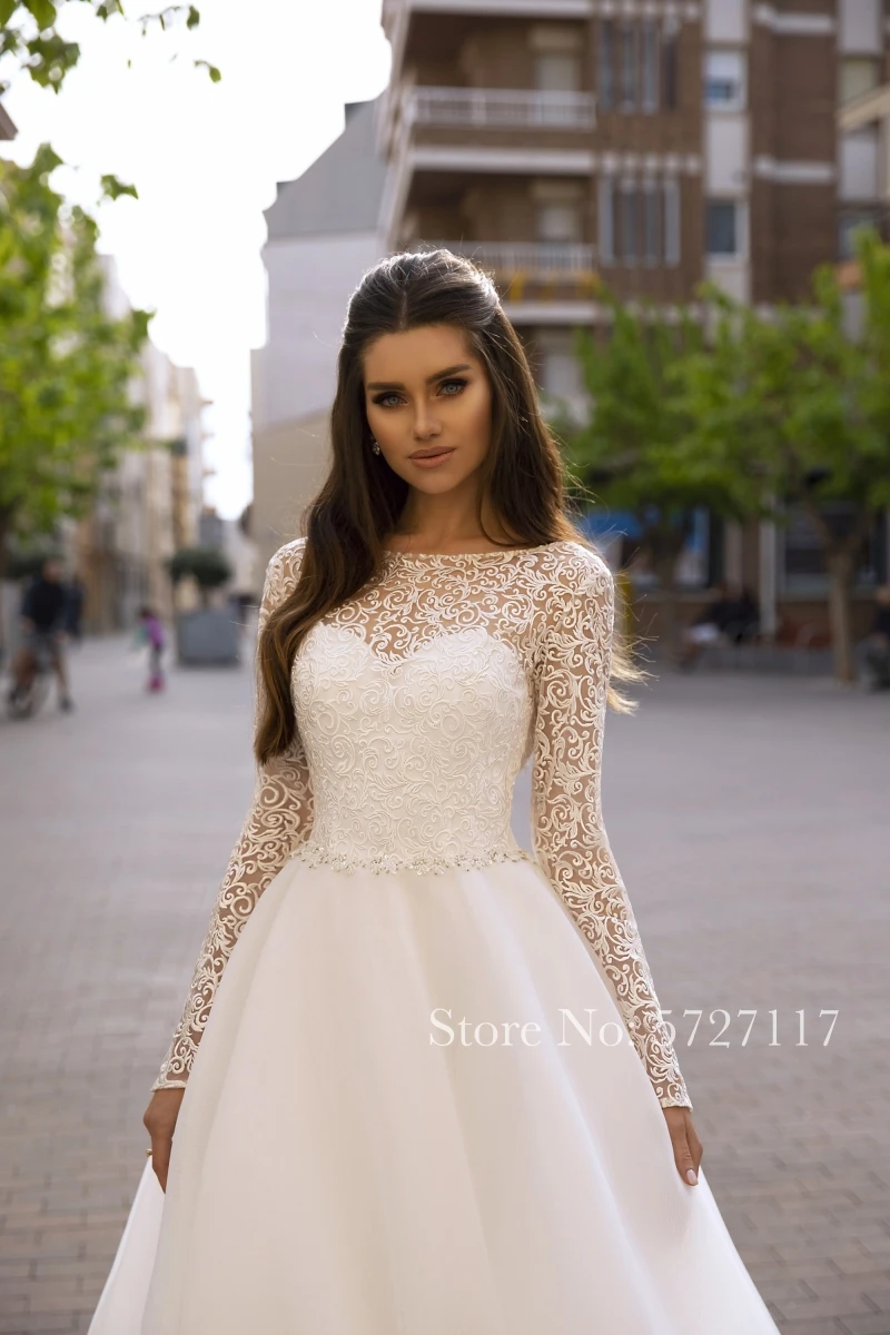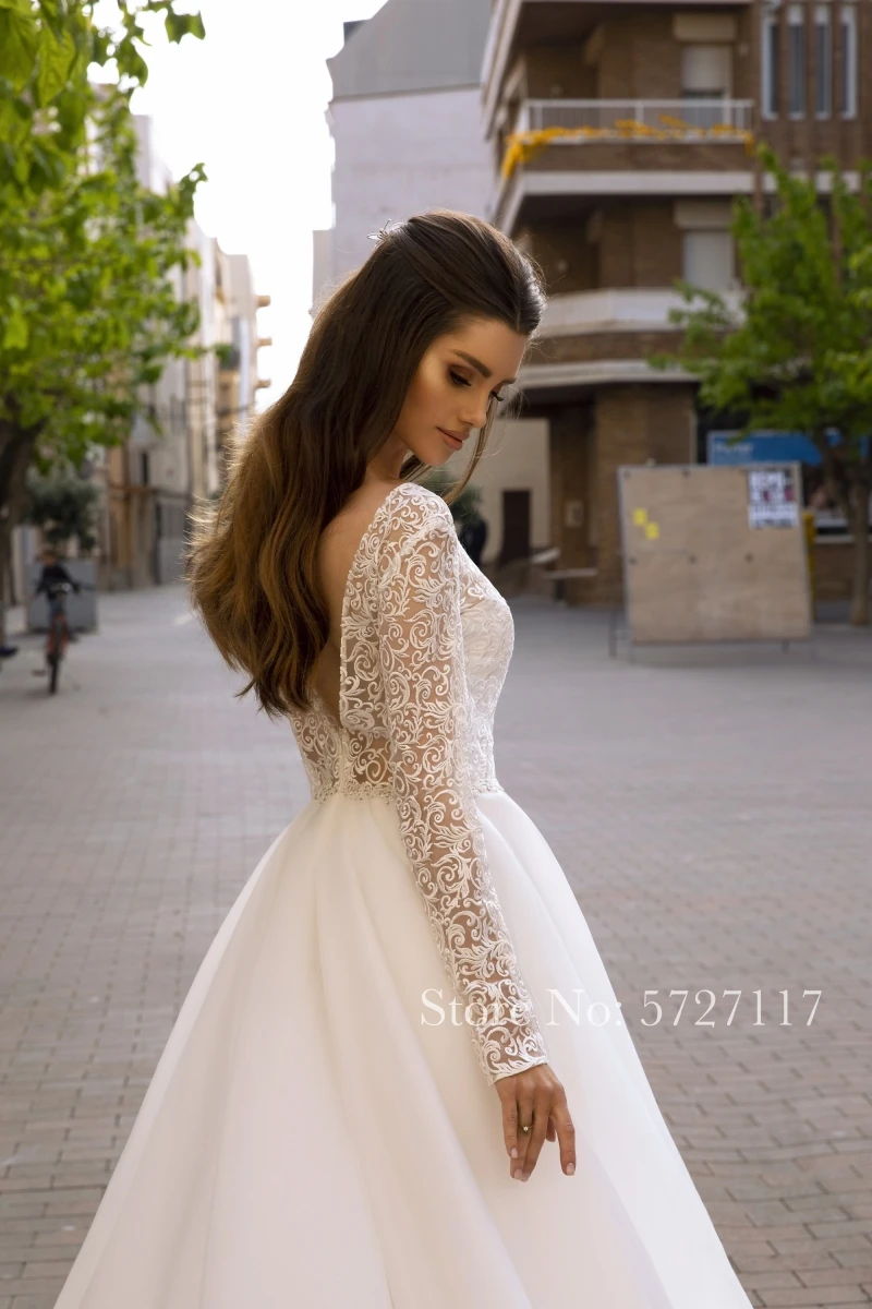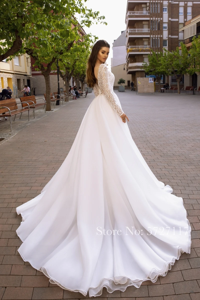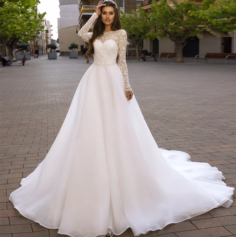 Кружевное платье невесты с длинным рукавом, элегантное Прозрачное платье А-силуэта из органзы, летние пляжные свадебные платья в стиле бохо