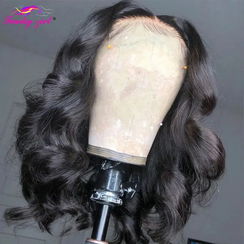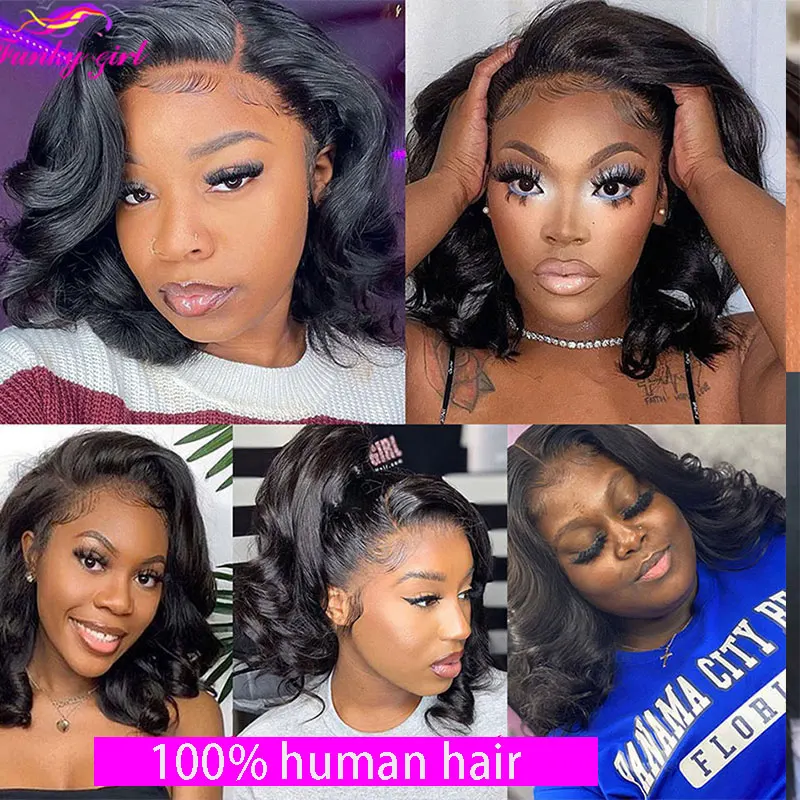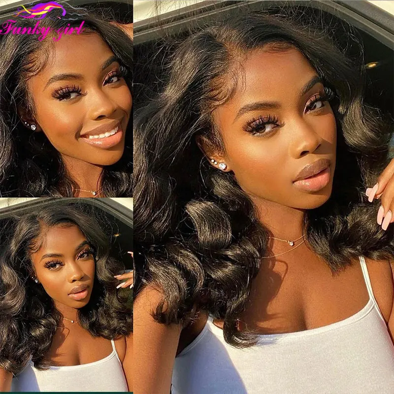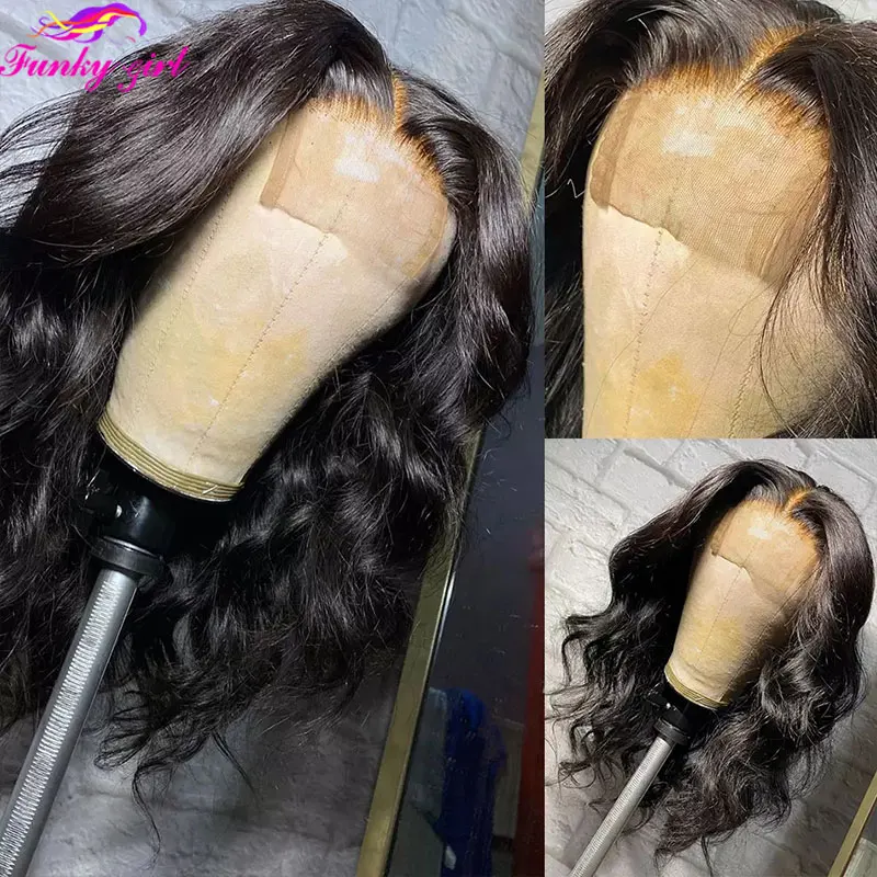 FG Body Wave короткие парики боб 4x4x1 кружевные парики бразильские вьющиеся волосы естественного цвета T-образные парики 100% стандартные для женщин