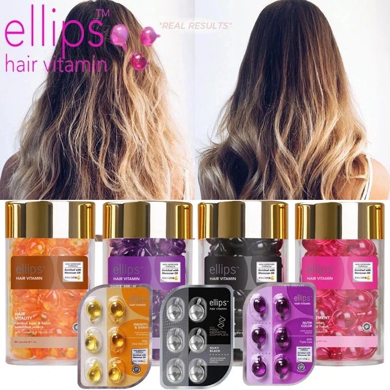 ELLIPS Уход за волосами Лечение Эфирное Витаминное масло капсулы волос кератин Stranthen ремонт повреждения волос Комплекс Индонезия масло жожоба
