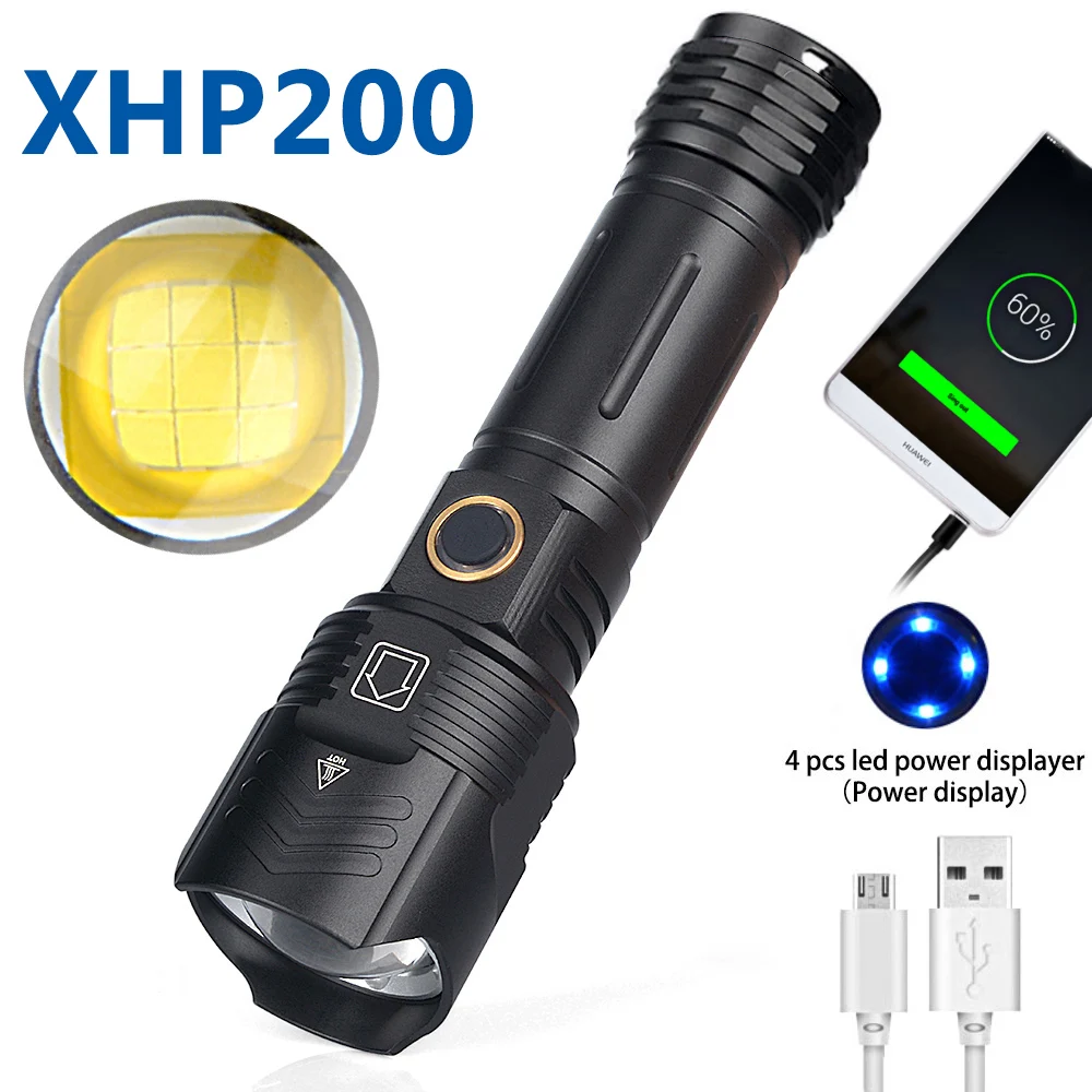 Светодиодный фонарик XHP200, алюминиевый фонарь с аккумулятором 18650, 26650, фонарь из сплава люмен, 60 Вт