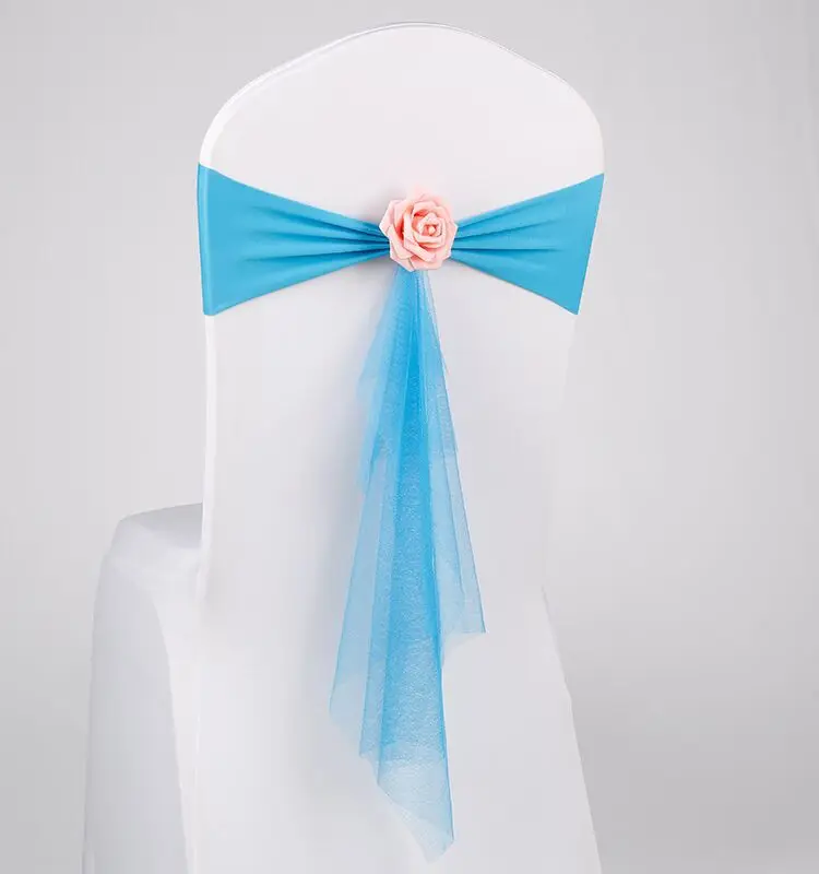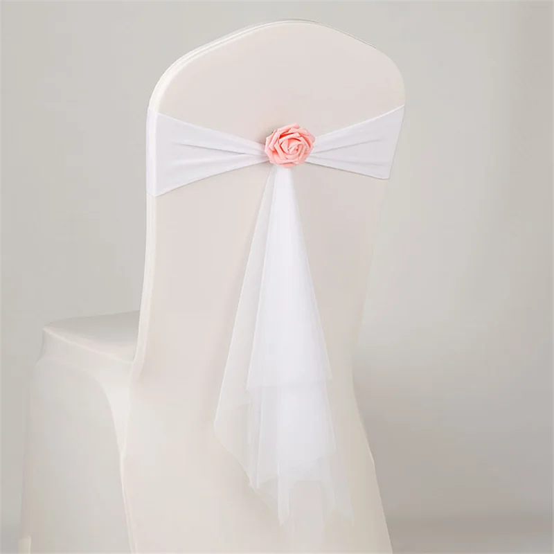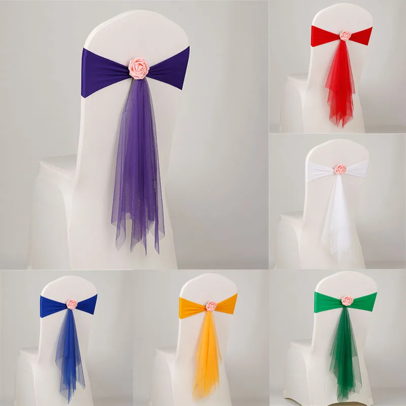 Украшение для стула из органзы с цветочным поясом из спандекса