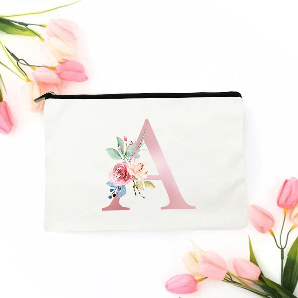 Экологичная сумка для макияжа, цветочный алфавит, сумочки для макияжа, подарки для невествечерние, косметичка, подарок для нее